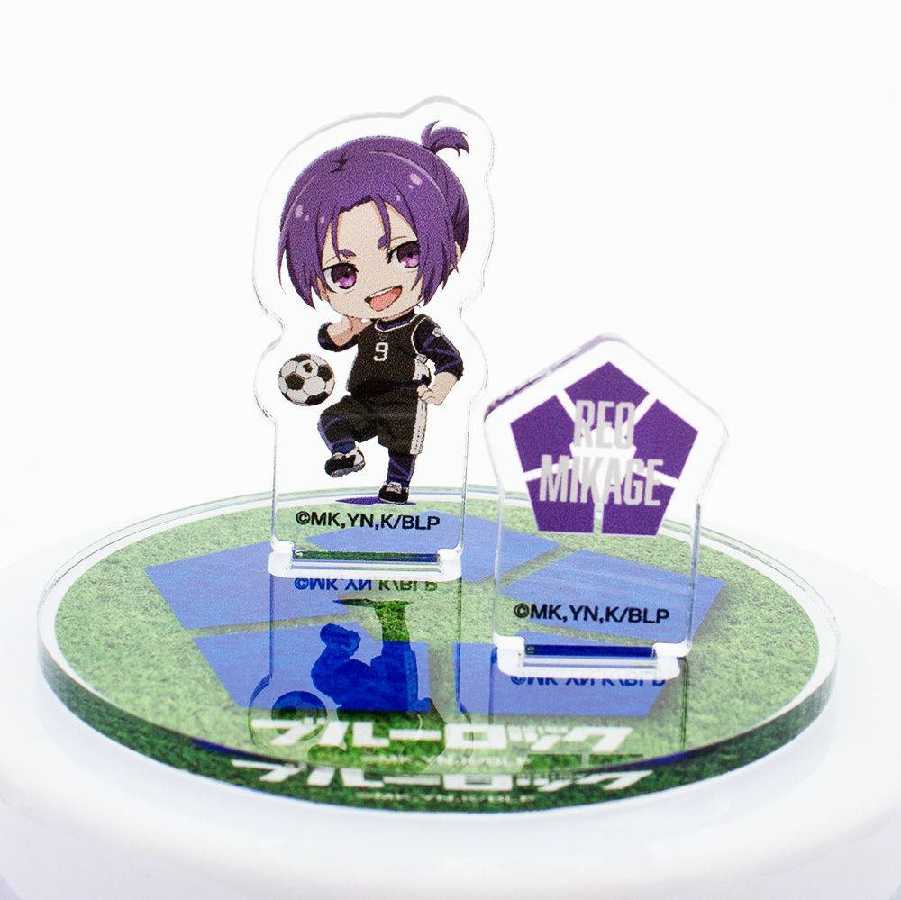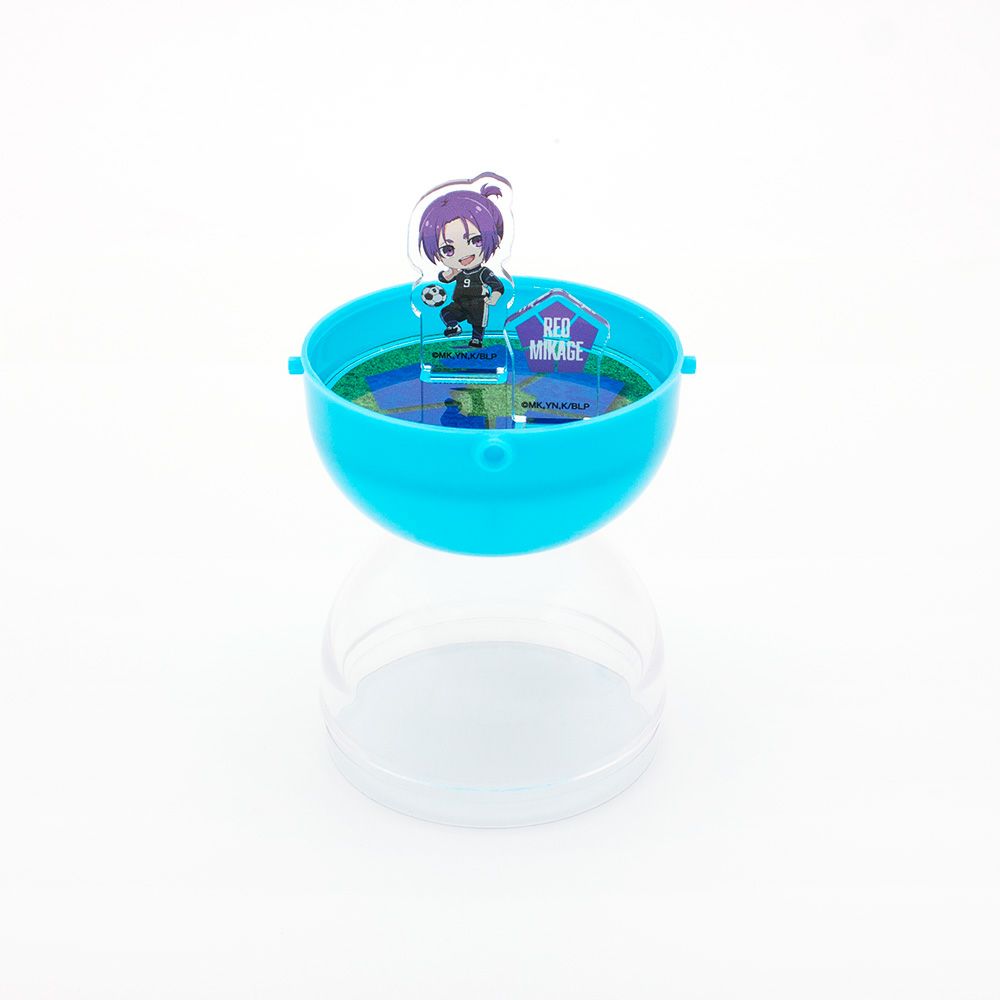 公式ミニキャライラストを使用したカプセルスタンドです。御影玲王がちまっとしたミニサイズのアクリルスタンドに。ライバルたちのカプセルと繋げて、技の化学反応を起こせ!