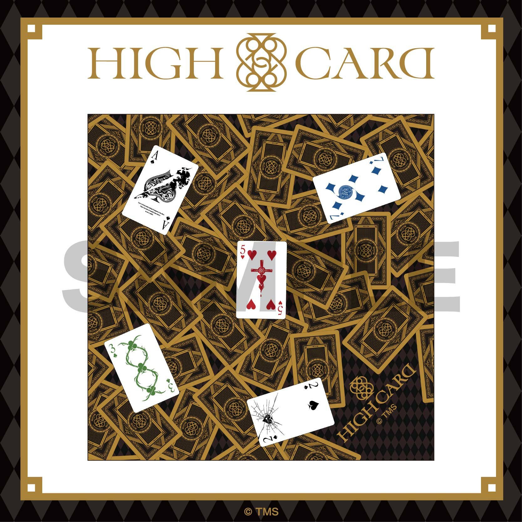 エクスプレイングカードが散りばめられたシックなデザインのミニタオル。持ち運びしやすいサイズのタオルです。