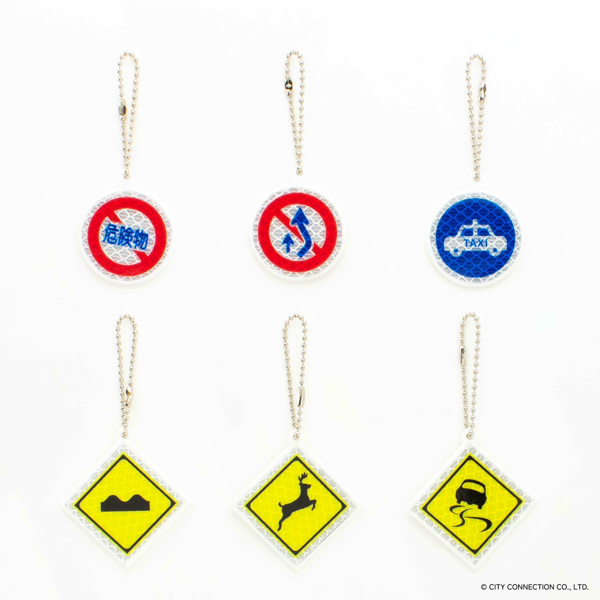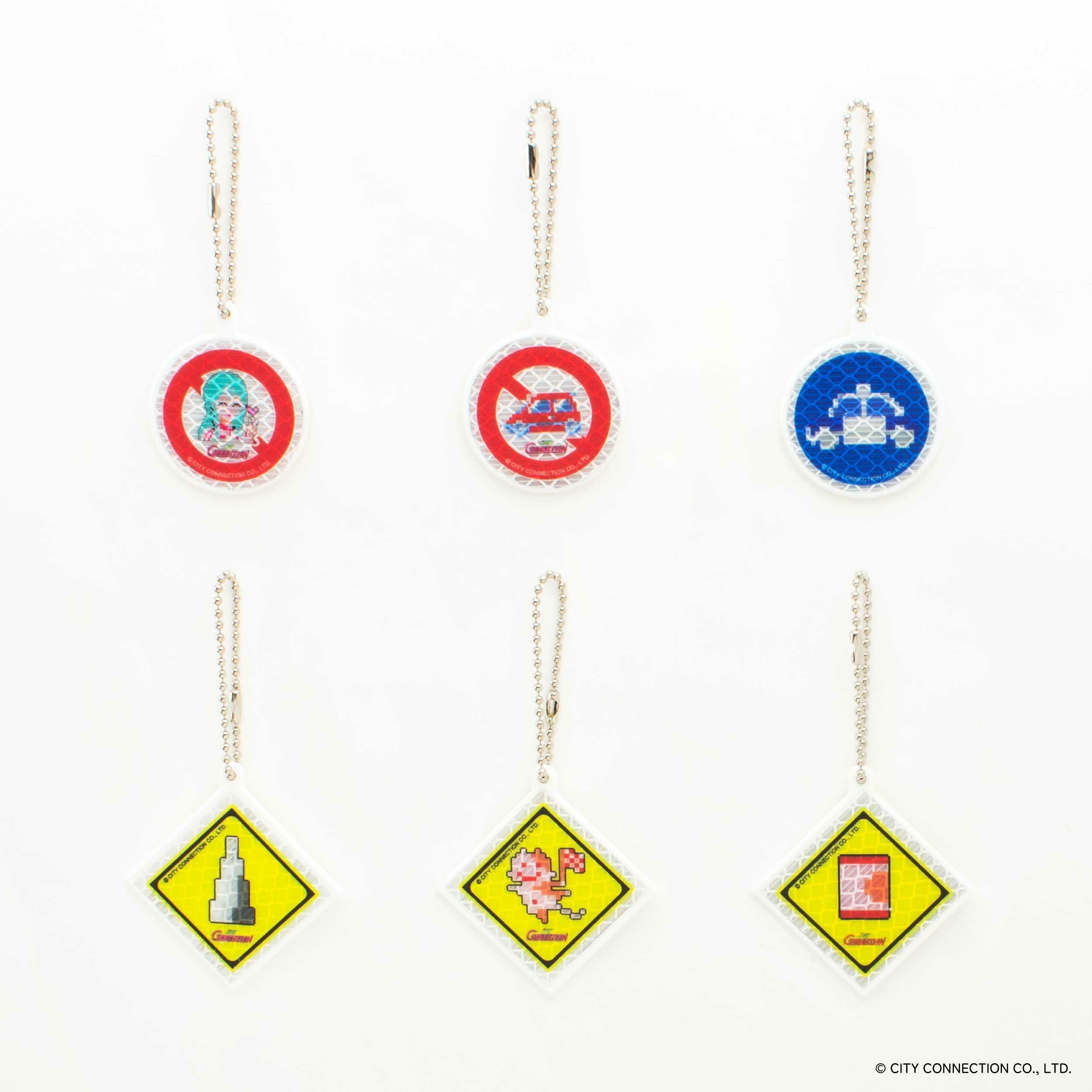 「シティコネクション」の印象的なキャラクターが交通標識テイストのキーホルダーになって登場。