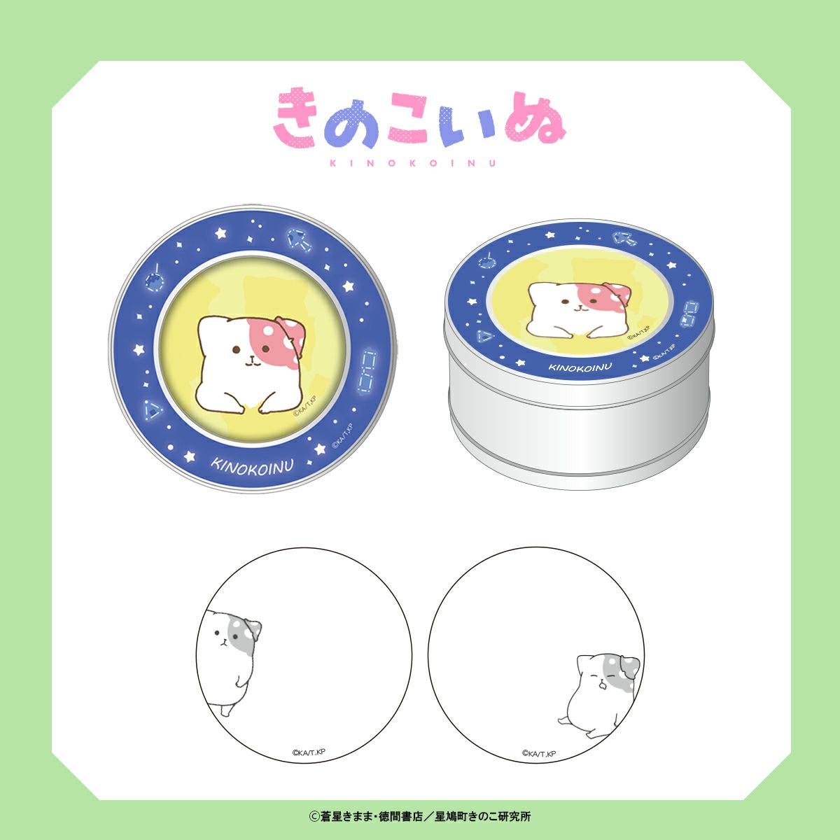 きのこいぬのマグネット付缶ケースの登場です。蓋をあけると、メモ用紙にはひょっこりとこちらを覗くきのこいぬの姿が!中のメモは2種各50枚入りです。メモを使い終わった後は小物入れにも。