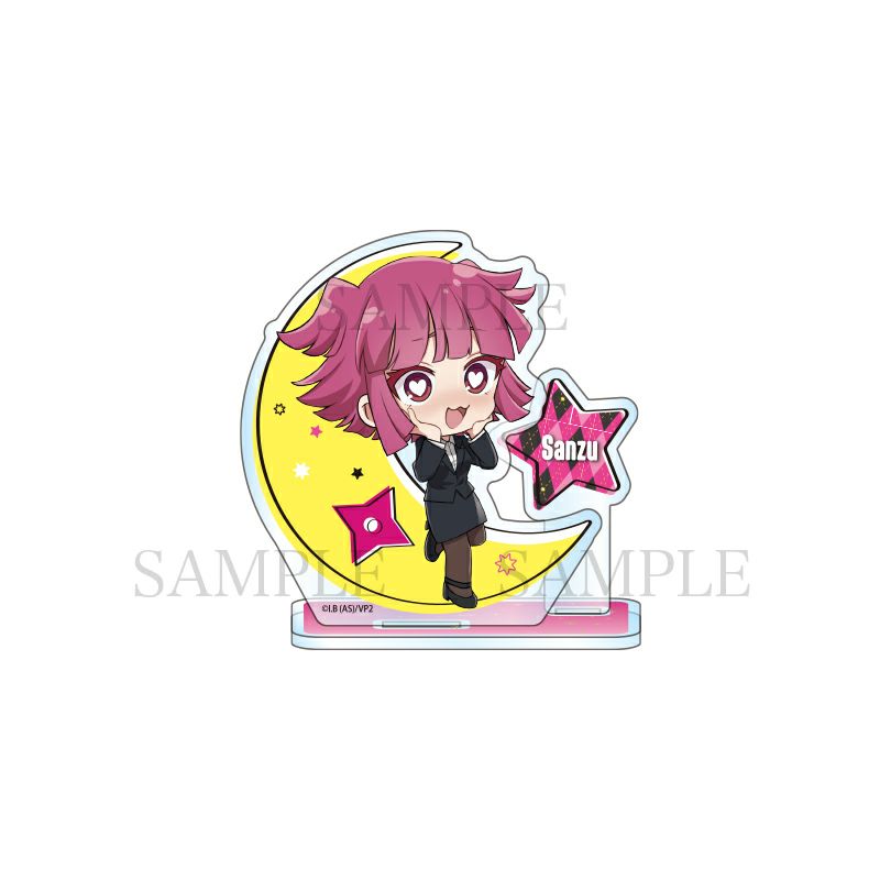 「吸血鬼すぐ死ぬ2」より、描き起こしミニキャラを使用したオリジナルデザインのアクリルスタンドが登場です。大きな三日月の前に佇むサンズ。目線の先にはロナルドが……?各キャラクターたちのモチーフをワンポイントに配しました。同じシリーズにはキャラクター違い(別売り)もあります。