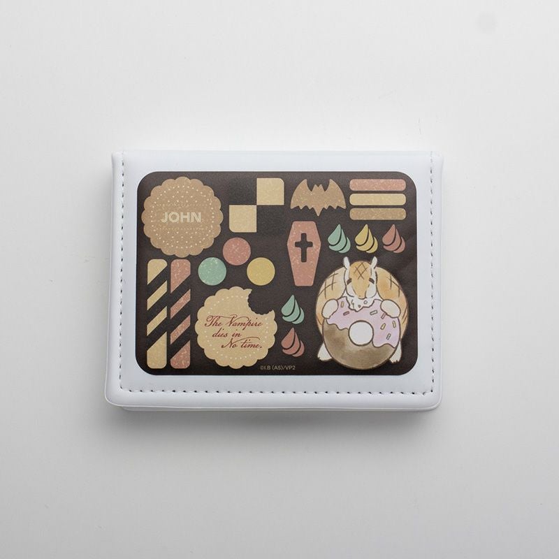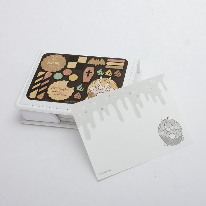 クッキーに囲まれたジョンのミニタオルが登場です。タオル全面をクッキー缶に見立てたデザイン。お菓子を頬張るジョンの愛らしさと、ちりばめられた吸血鬼モチーフのクッキーがポイント。