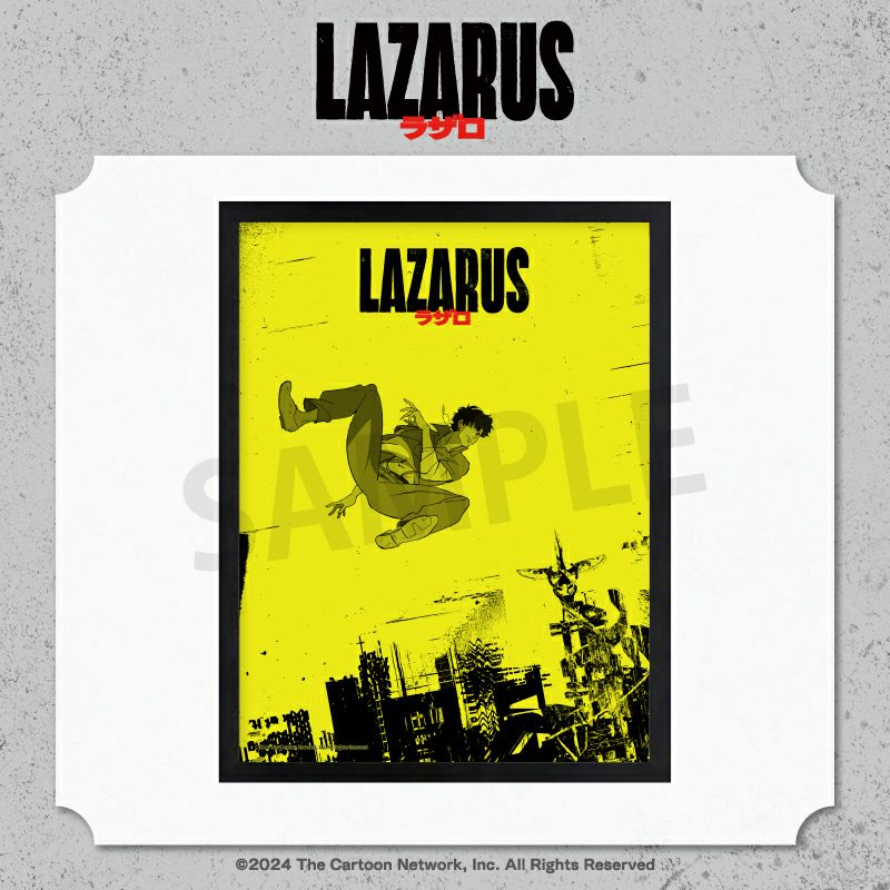 12色インクのプリンターを用いて制作した、高精細の複製画です。額縁に入れ、作品証明書にシリアルナンバーを記載してお届けします。『LAZARUS ラザロ』の世界観に合うよう、シンプルで落ち着いた黒の木製額を使用しています。