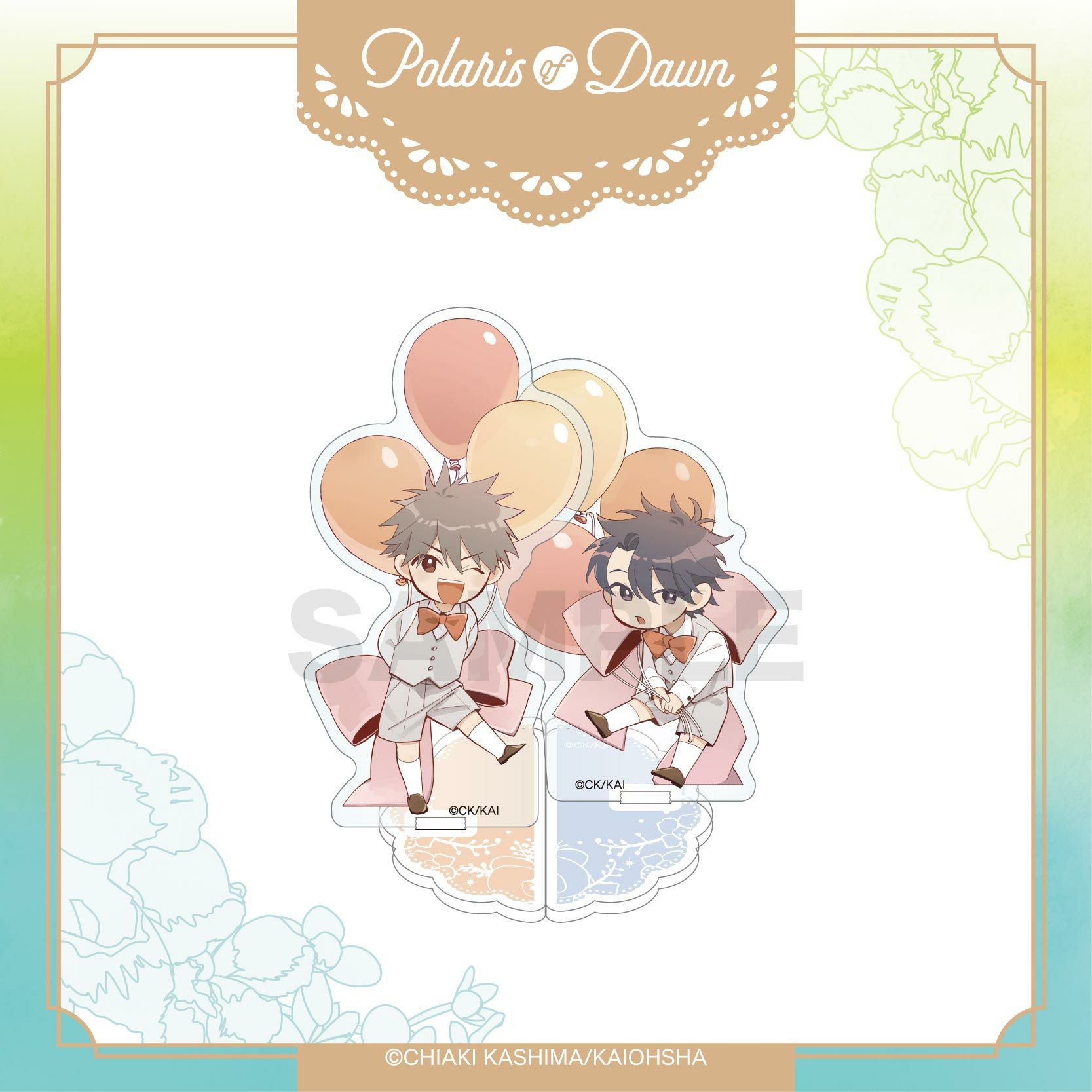 「夜明けのポラリス」より、嘉島ちあき先生描き下ろしのミニキャライラストを使用したアクリルスタンドが発売!板の状態のままでも、組み立てて飾っても可愛らしいデザインの商品です。