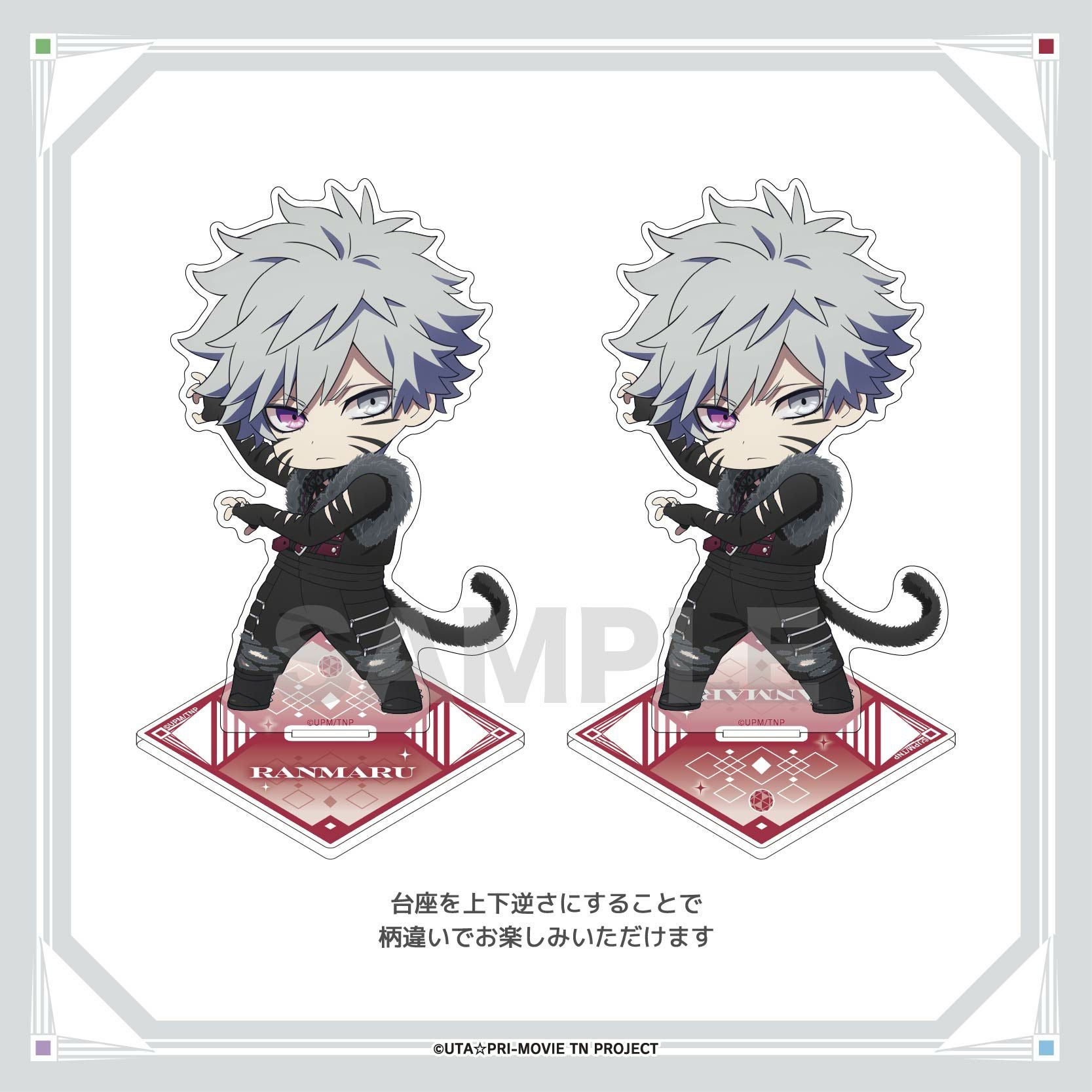 ソロ衣装のちびキャライラストを使用した、蘭丸のアクリルスタンドです。かなり大きなサイズで存在感抜群!台座はどちらの向きで組み立てても可愛いデザインになっています。