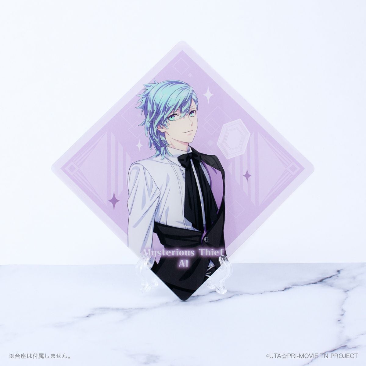 怪盗衣装の等身ビジュアルを使用した、藍のアクリルコースターです。透け感のあるデザインで、コースターとしてだけではなく、アクセサリーや小物をおしゃれに飾ったりグッズなどと一緒に写真を撮ったりしてもかわいい!