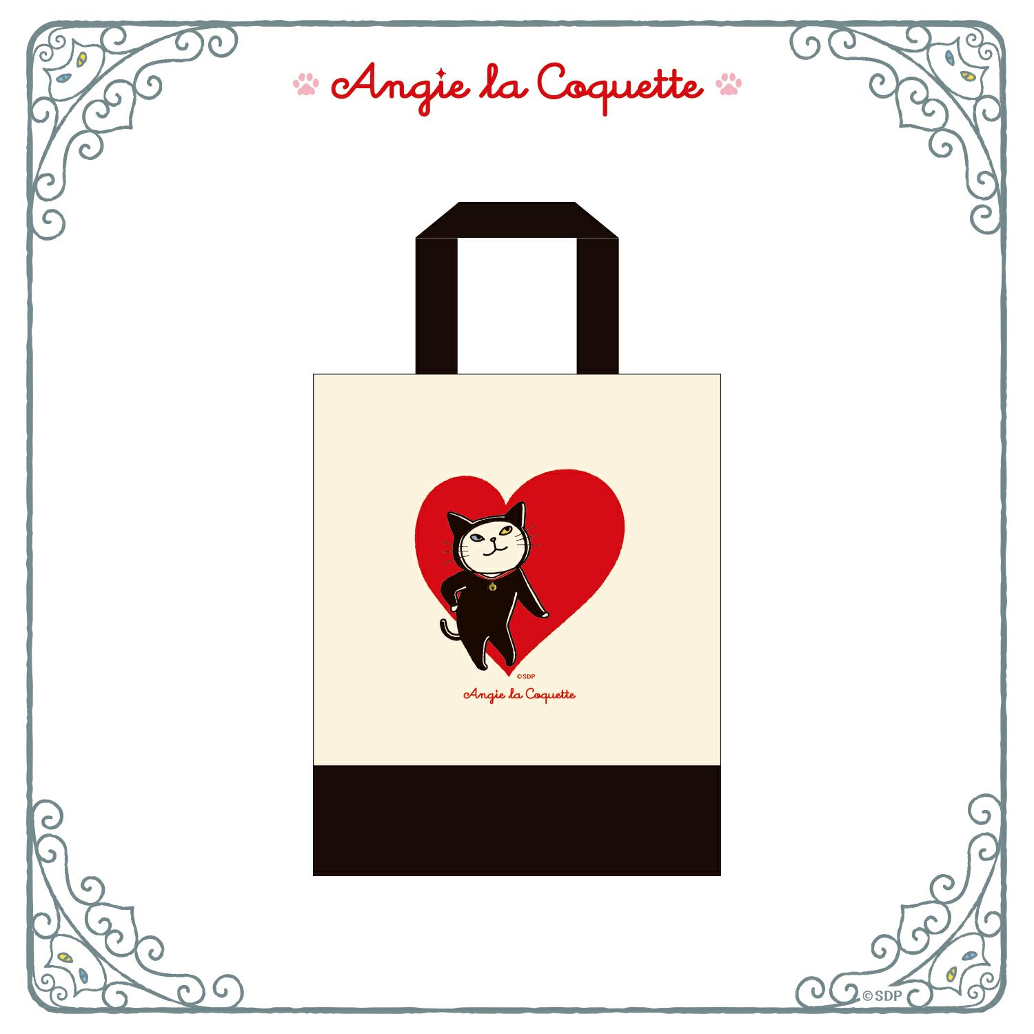 ハートをバックに黒猫姿のクールなアンジーを配したA4サイズのトートバッグです。愛らしいアンジーのフェイスが目を引くデザインです。ちょっとしたお出かけやサブバッグとしてもお使いいただけます。