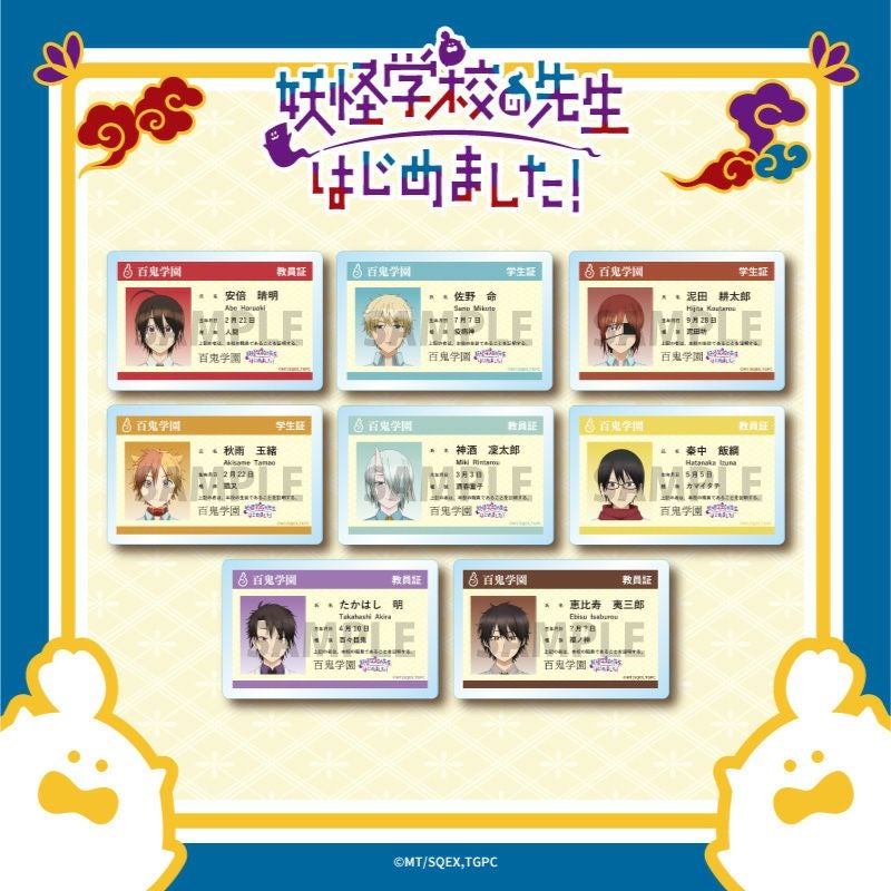 百鬼学園の学生証・教員証をイメージしたネームバッジが登場です。 ※こちらの商品は単品での販売です。絵柄はお選びいただけません。販売方法の性質上、複数個ご購入いただいた場合、同じ絵柄が続けて出てくる可能性がございます。予めご了承ください。