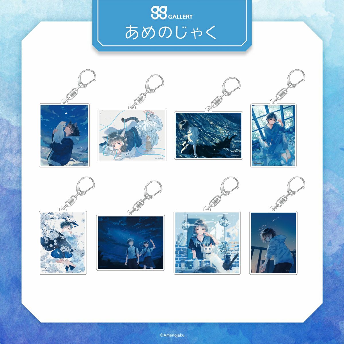 青に癒されるようなイラストを描くイラストレーター あめのじゃくさんのトレーディングアクリルキーホルダーの第3弾が登場です!バッグに身につけてワンポイントアクセントにも! ※こちらは8種が全て揃うコンプリートBOXです。