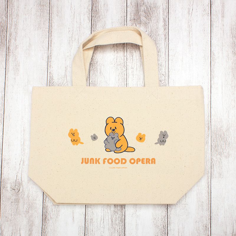クオッカちゃんと仲間たちの優しい世界を生みだす作家、JUNK FOOD OPERAさんの小さめのトートバッグが登場です!持ち運びに便利なサイズなので、ランチバッグにしても◎。 ちょっとしたお出かけのときにも大活躍です。