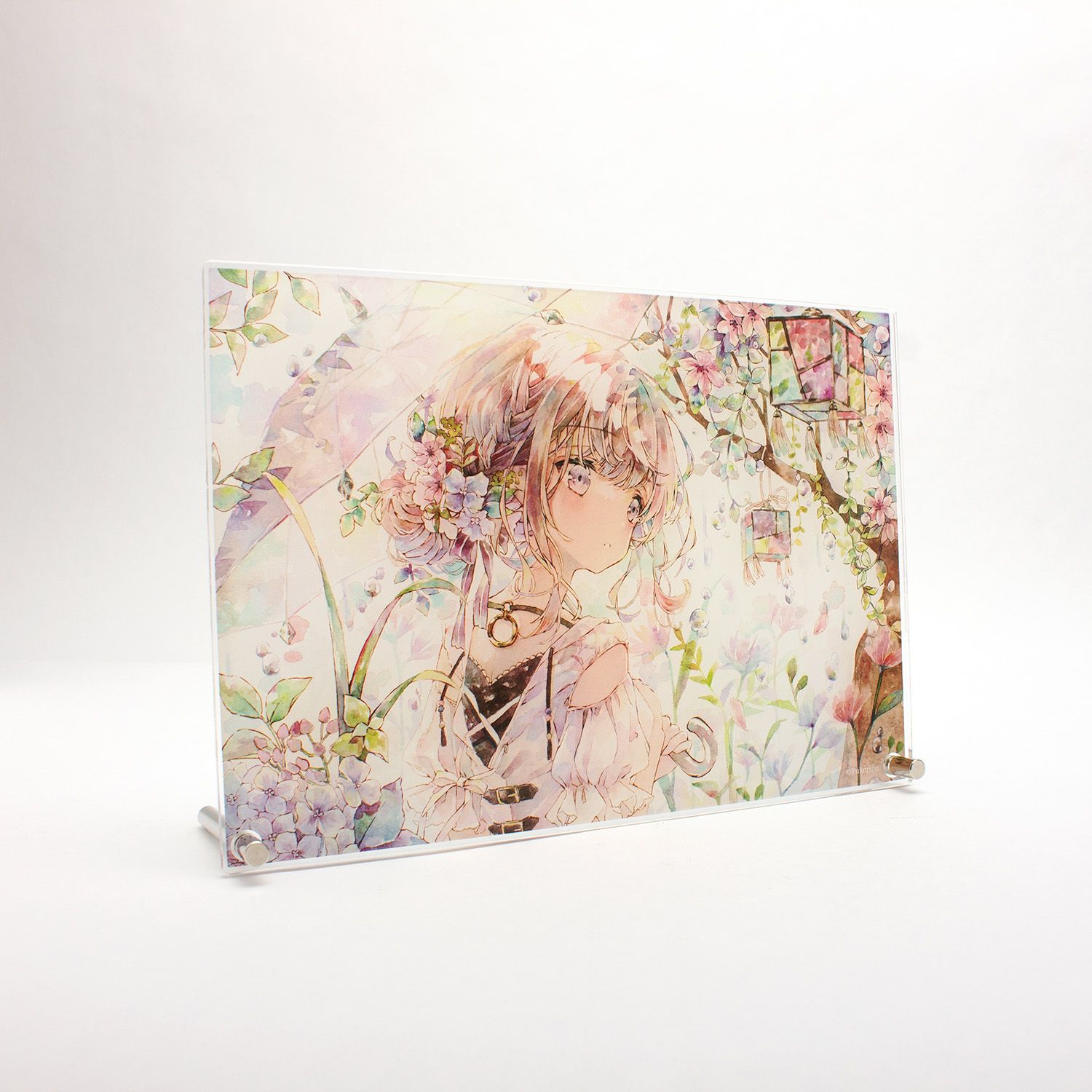 透明水彩イラストレーター 優子鈴さんのイラスト「雨」を飾りやすいA5サイズのアクリルパネルに仕立てました!スタンドネジ(化粧ビス)付き。インテリアとしても重宝すること間違いなしのアイテムです。