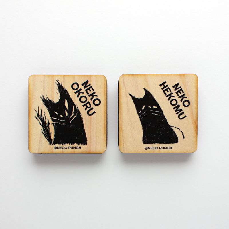 NECOPUNCH CHARCOL ウッドマグネットセット / ねこおこる&ねこへこむ