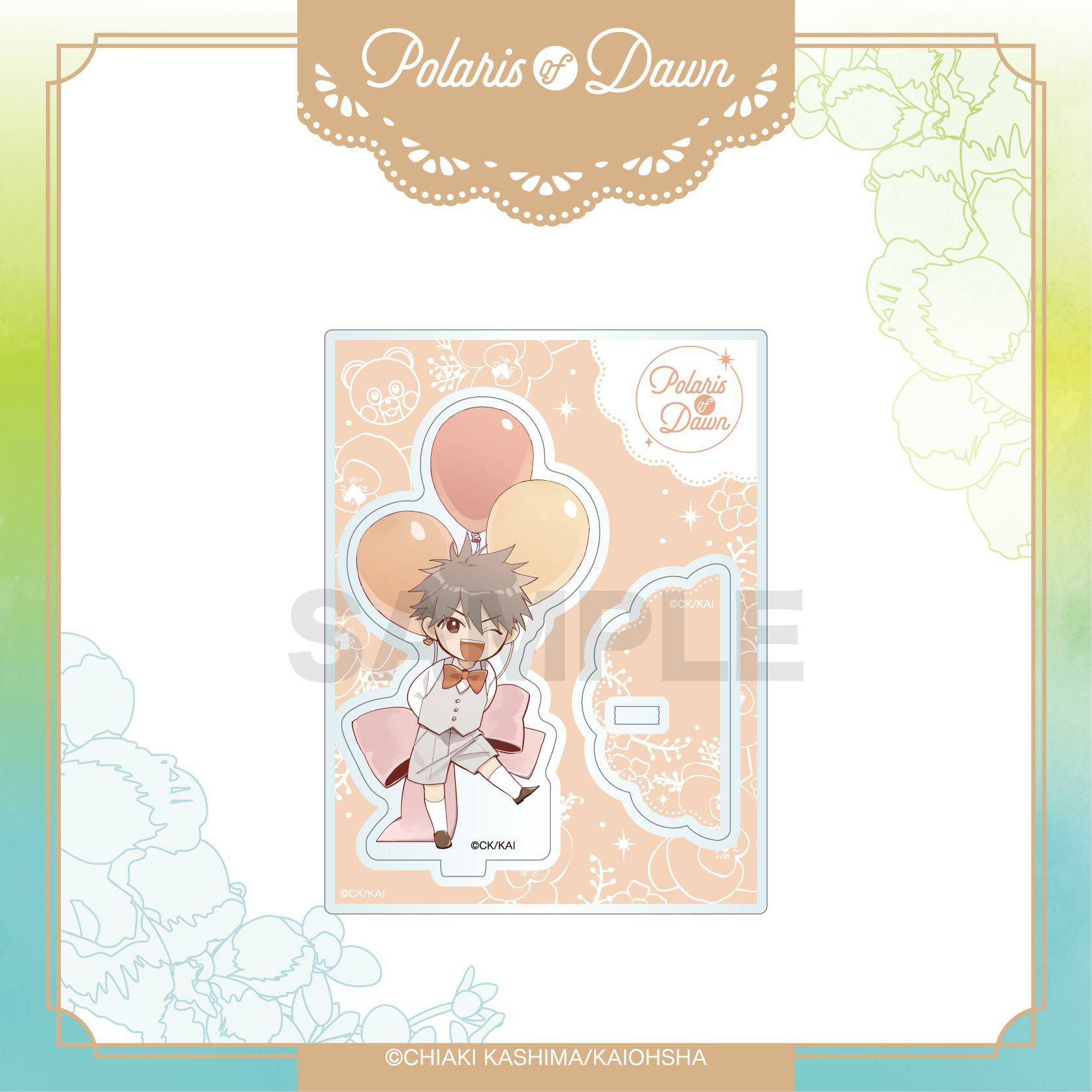 「夜明けのポラリス」より、嘉島ちあき先生描き下ろしのミニキャライラストを使用したアクリルスタンドが発売!板の状態のままでも、組み立てて飾っても可愛らしいデザインの商品です。