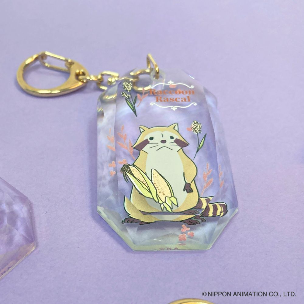 世界名作劇場 あらいぐまラスカルの宝石のようなカットでクリスタルのような輝きのチャームが登場です。 クリスタルチャームは、一見ガラスのようですが、植物など生物資源を含んだ素材で作られる、環境に優しく柔らかいバイオマスプラスチック製なので割れる心配はありません。特別な技術で作られているため透明度が高く、まるでクリスタルガラスのような輝きです。
