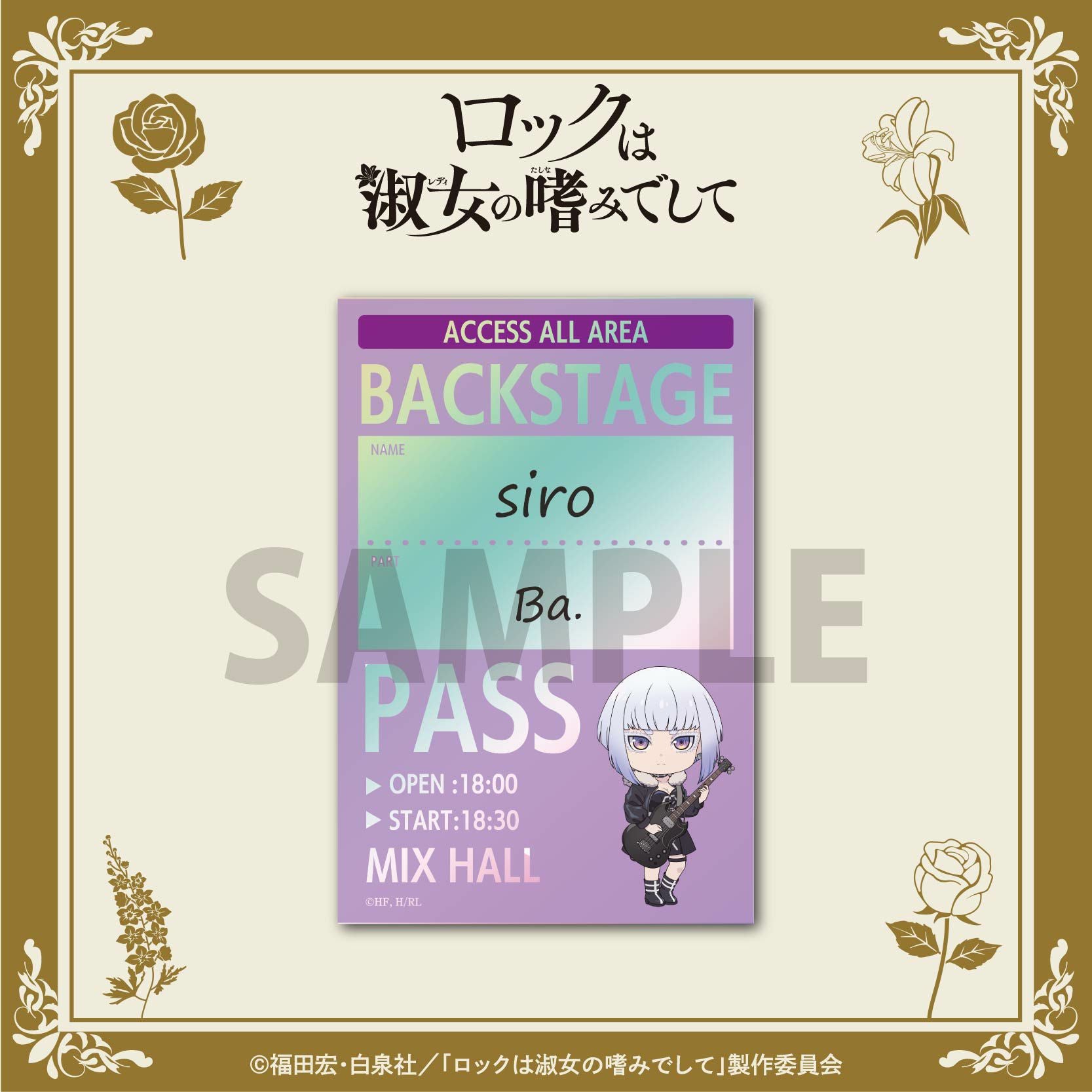 TVアニメ『ロックは淑女の嗜みでして』 バックステージパス風ホロステッカー付きクリアポーチ / 白矢環