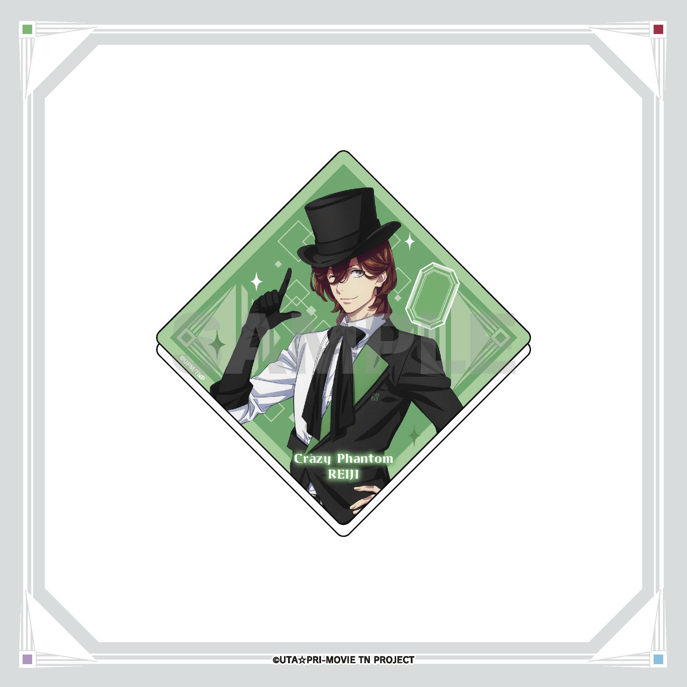 怪盗衣装の等身ビジュアルを使用した、嶺二のアクリルコースターです。透け感のあるデザインで、コースターとしてだけではなく、アクセサリーや小物をおしゃれに飾ったりグッズなどと一緒に写真を撮ったりしてもかわいい!