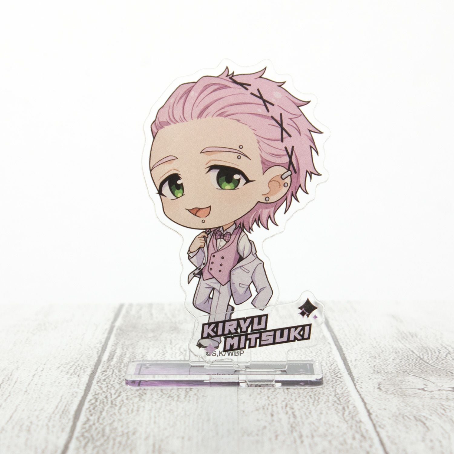 桐生三輝の描き起こしミニキャライラストを使用したアクリルスタンドです。白スーツを身に纏ったキャラクターたちとスタイリッシュなデザインがおしゃれ!