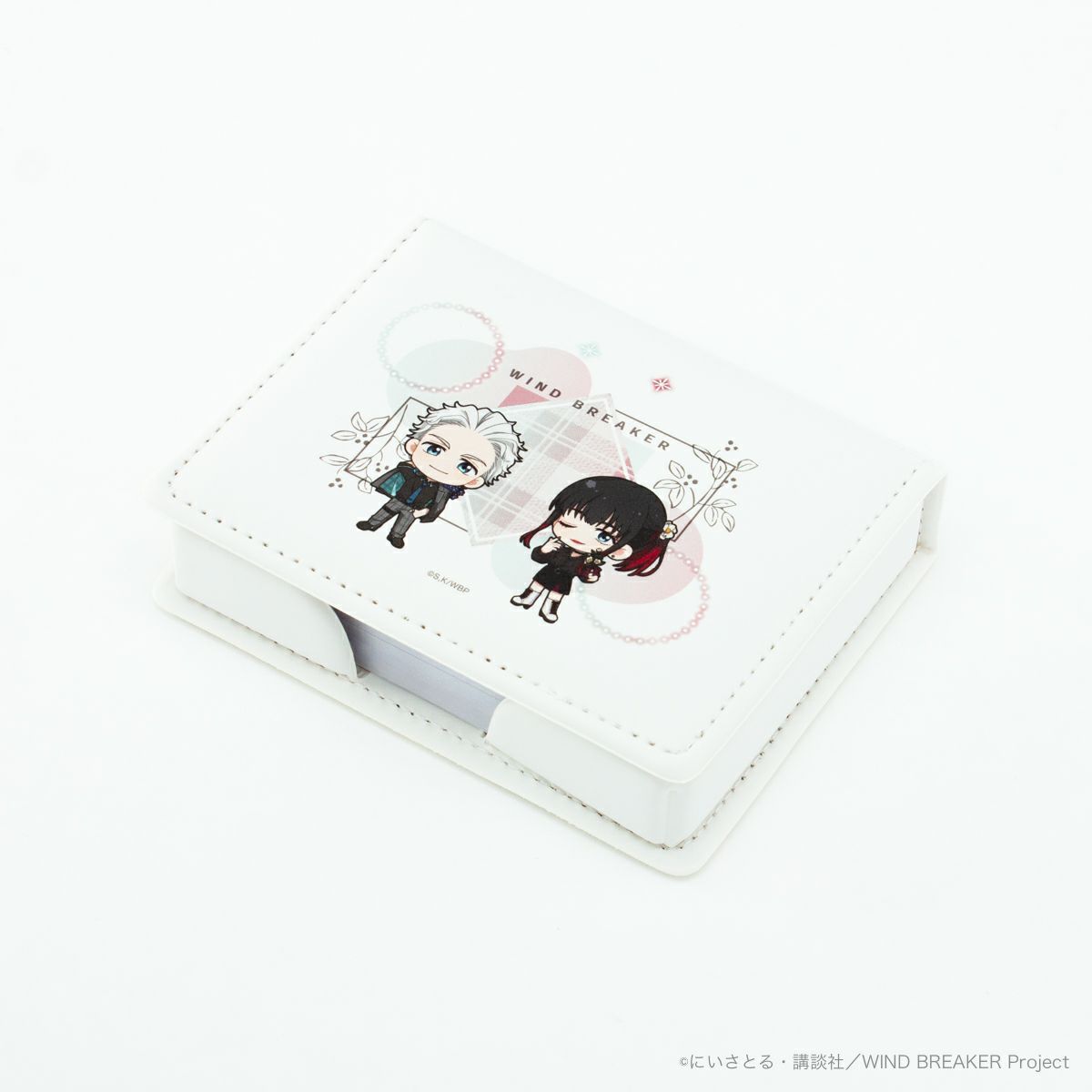色々な花のブーケを持ったキャラクターたちが、チェック柄のリンクコーデに身を包んだ「Flower Gift Collection」の描き起こしミニキャライラストを使用した、たっぷり150枚のメモ用紙が入った優しい感触のメモボックス。メモ用紙を使い切った後は小物入れとしてもお使いいただけます。