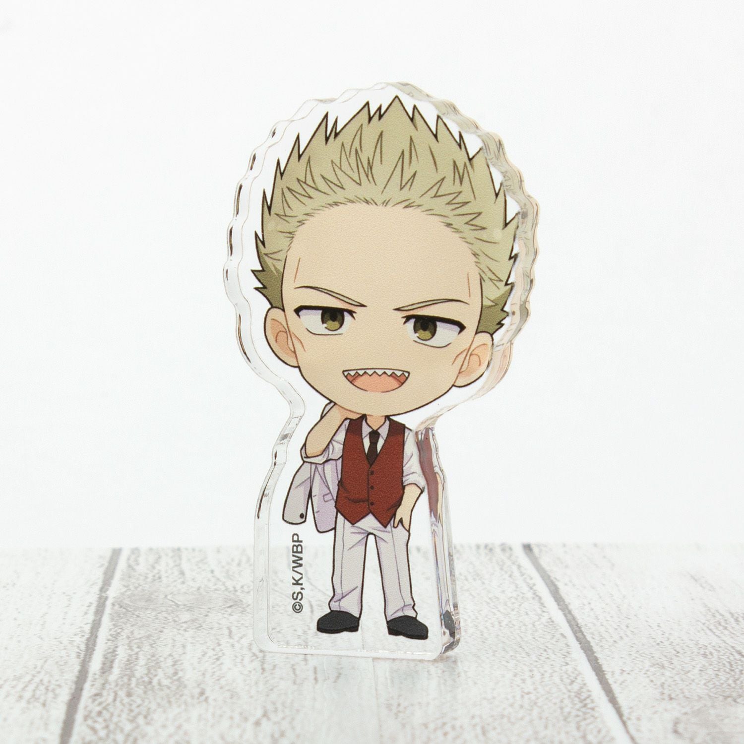 白スーツを身に纏った柊登馬の描き起こしミニキャライラストを使用した、8mmの厚みで台座なしで自立するアクリルフィギュアです。