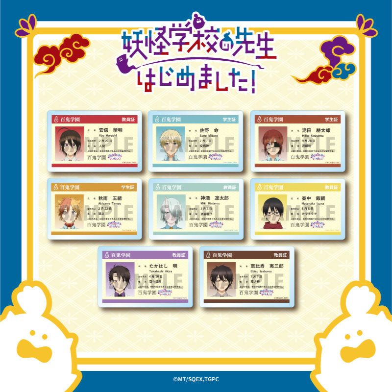ビビリで泣き虫な新米教師・安倍晴明(あべはるあき)。 憧れの教師になり、喜んでいたのもつかの間! 赴任先の百鬼学園は、なんと妖怪たちの妖怪たちによる妖怪たちだけの学校だった! 気弱でヘタレ、しかも人間である晴明を、学園長が雇った理由とは一体……!? クセ強人間教師・晴明と、個性が大渋滞の妖怪生徒&先生たちの、奇妙でにぎやかな日常を描く、愉快★痛快★妖怪★学園コメディ、TVアニメ『妖怪学校の先生はじめました!』より新グッズが登場です!