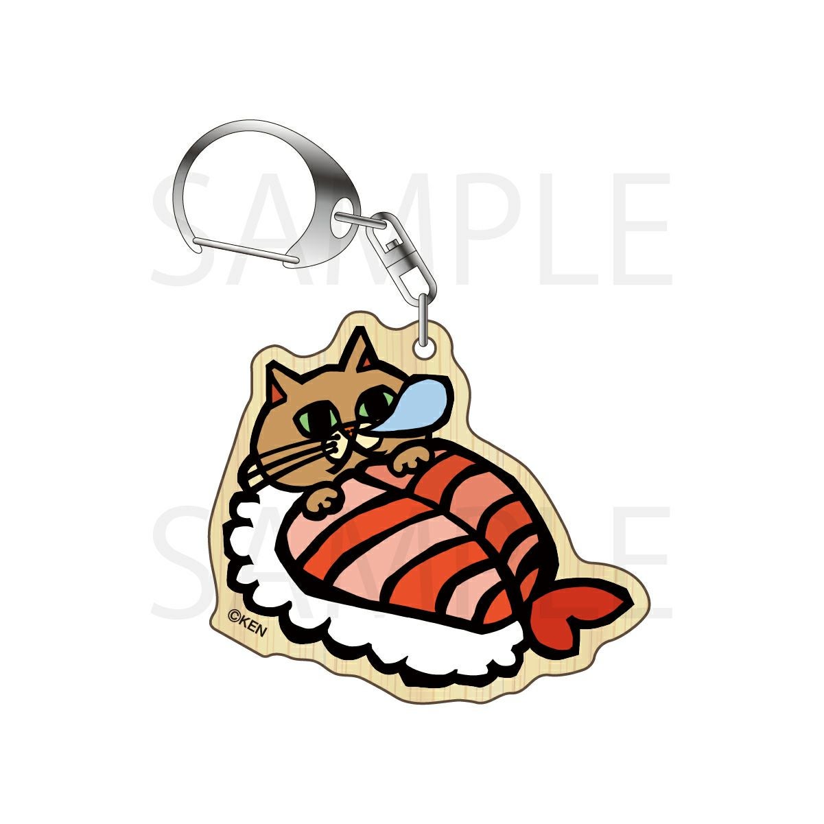 小学生切り絵クリエイター KENの「えびネコ」がウッドキーホルダーになりました!木の風合いがやさしい雰囲気のキーホルダーです。