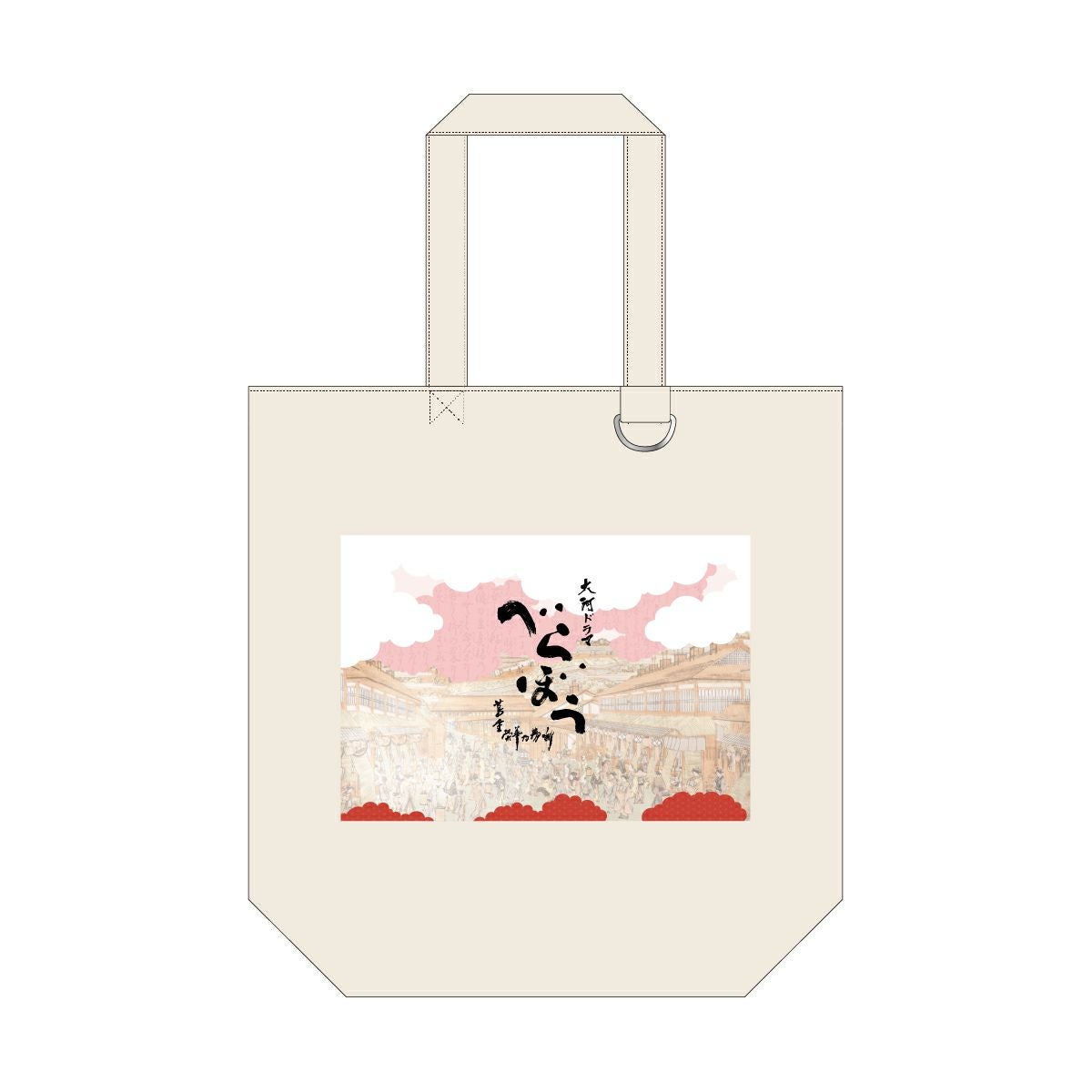 大河ドラマ「べらぼう」ロゴライセンス商品のトートバッグが登場です。「べらぼう」のロゴを大きくデザインしました。キーホルダー用のリングや内ポケット(Wポケット)付きで使いやすさ抜群の商品です。
