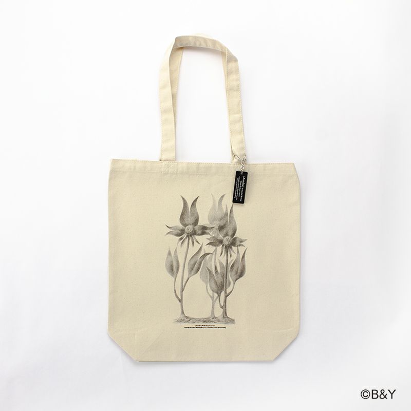 絵本作家として広く知られるレオ・レオーニの作品「平行植物」から 書籍の表紙にも使用された「フシギネ」と「マネモネ」。 20代前半に制作された初期の作品「ジャイアント」。 トートバッグには作品のネームプレートキーホルダーが付属しています。