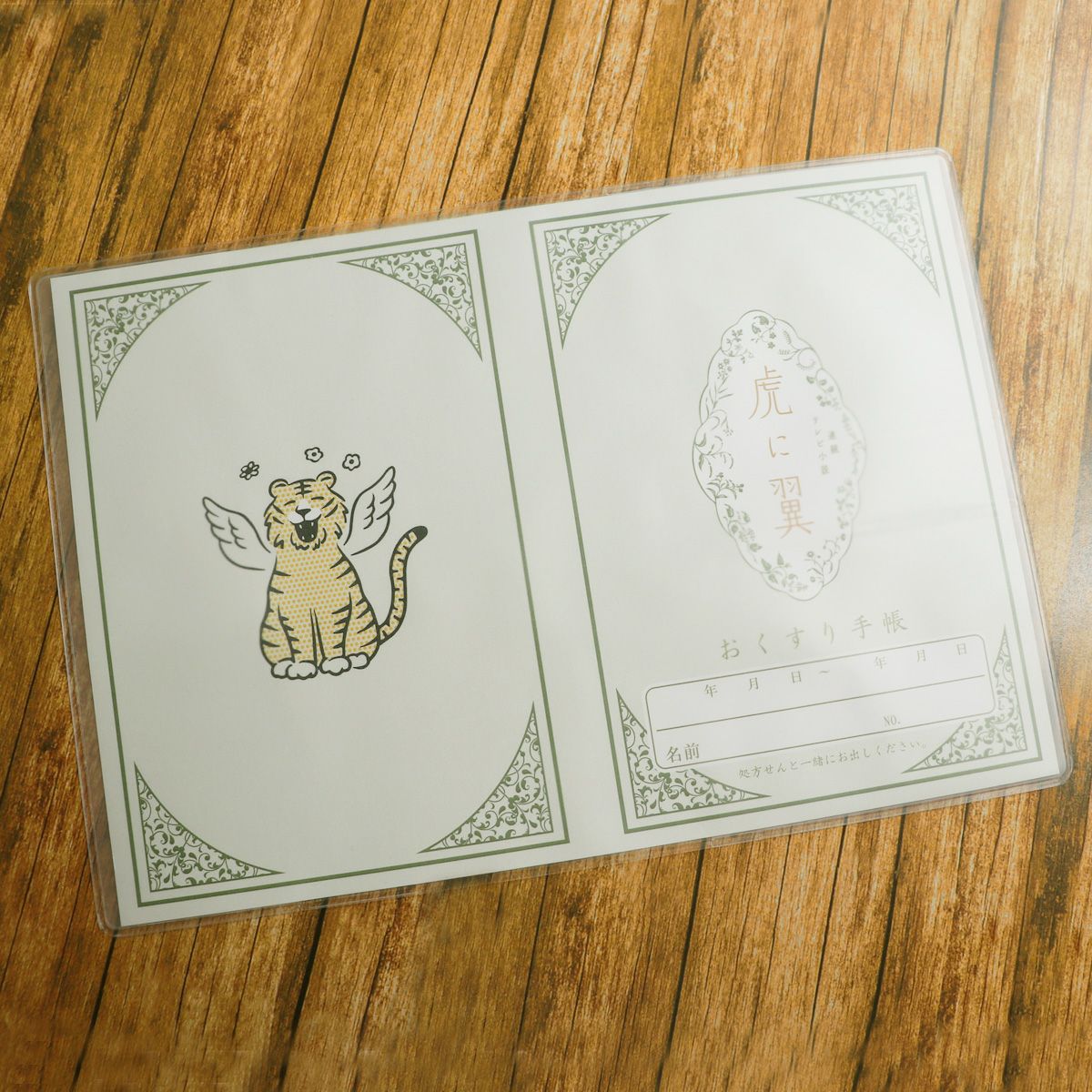 表がおくすり手帳、裏がマルチに使えるのデザインの2WAY仕様。