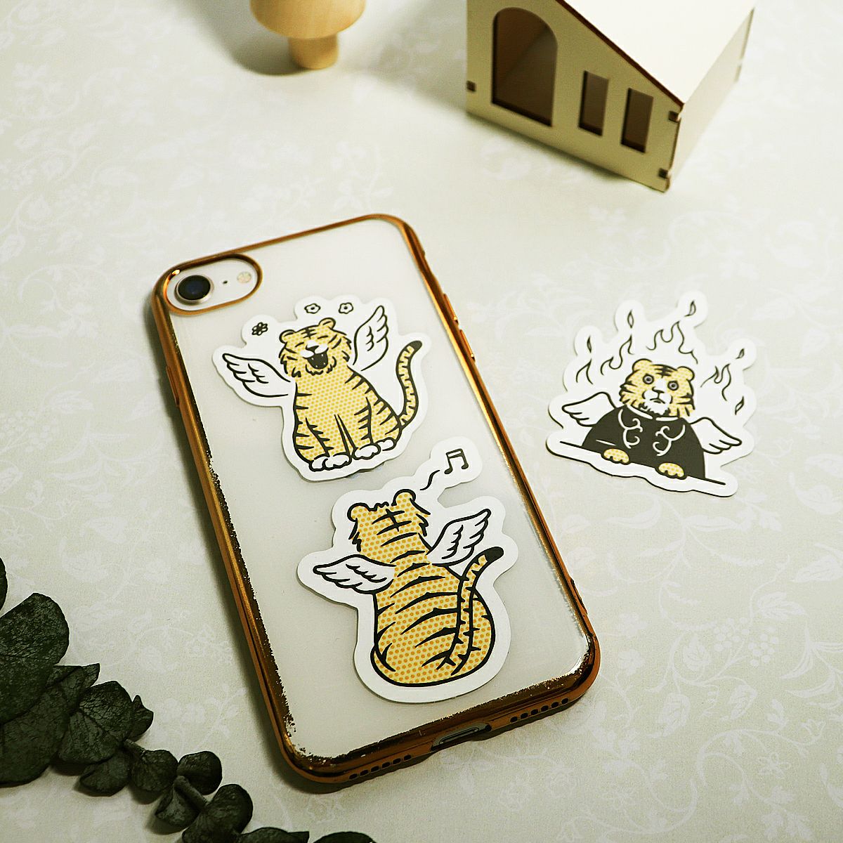 虎のイラストのダイカットのステッカーが3枚入ったセットです。