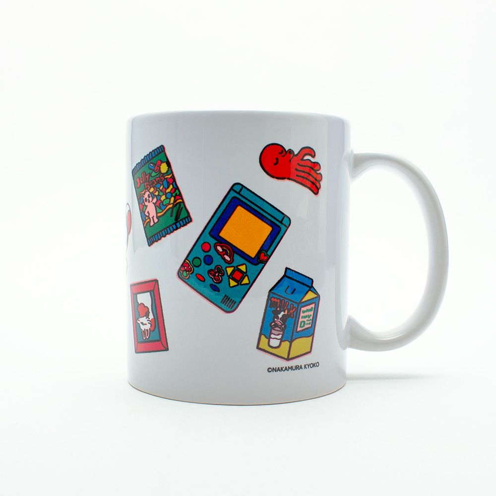 大人気イラストレーター 中村杏子さんのイラストをちりばめたレトロな印象のマグカップ。インテリアや小物入れなどにもおすすめです。