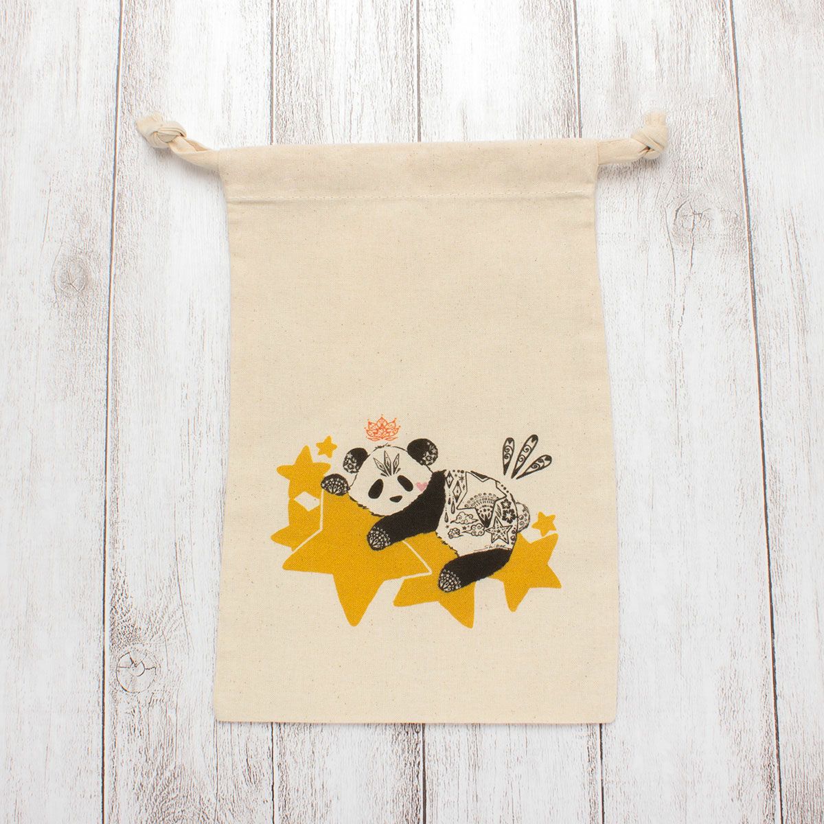 イラストレーター 柴尾さんによる星空町の工房から届けられた流星パンダ巾着が登場です!イラストは今回のPOP UP描き下ろし!シンプルで使いやすいサイズで、家でもオフィスでも使うことができます。