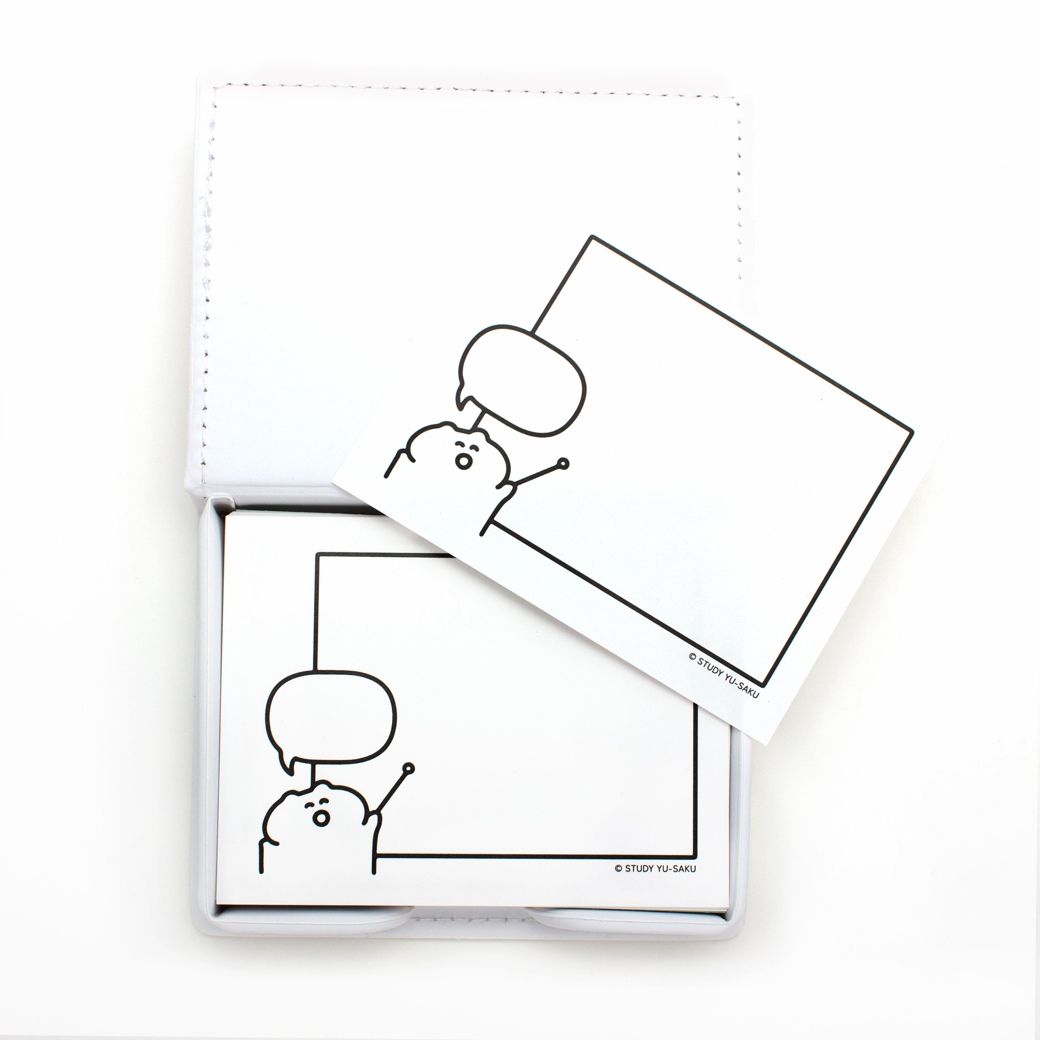 大人気イラストレーター・STUDY優作さんの可愛いデザインのメモボックス。150枚たっぷり入ったメモ用紙がふわふわした手触りのボックスに入っています。メモを使い終わった後は小物入れにも。