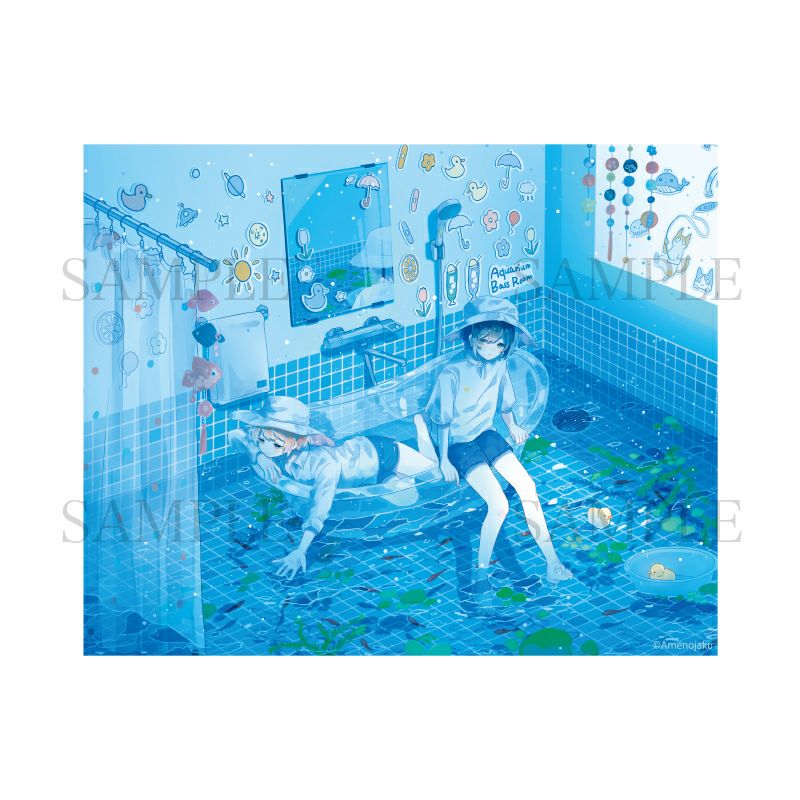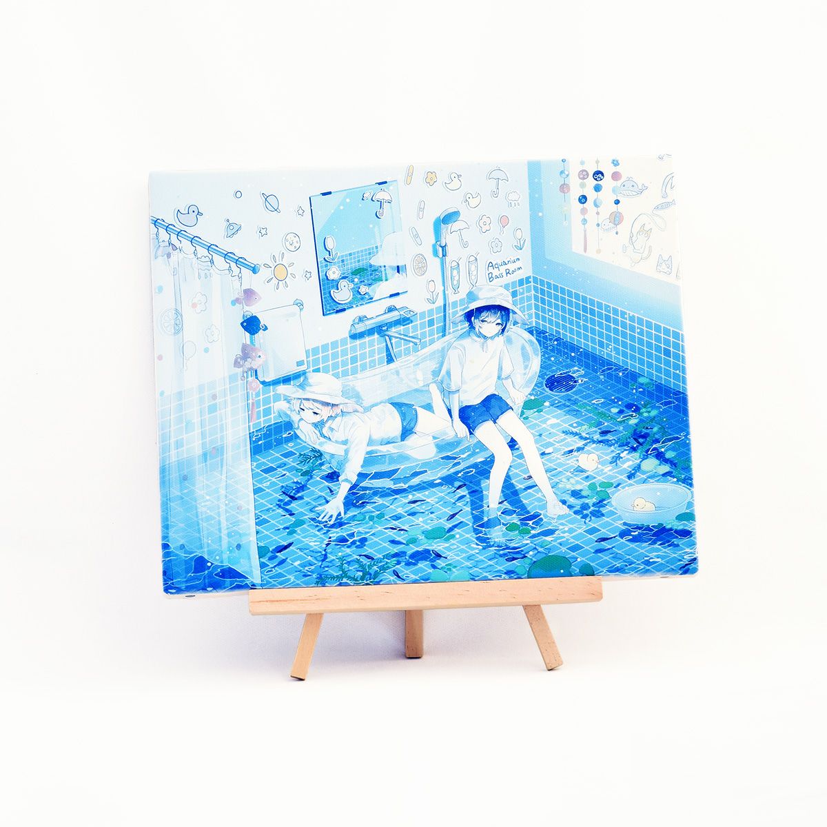 青に癒されるようなイラストを描くイラストレーター あめのじゃくさんの書き下ろしイラストをF3サイズのインテリア用パネルに。お部屋のアレンジに大活躍すること間違いなしのアイテムです。