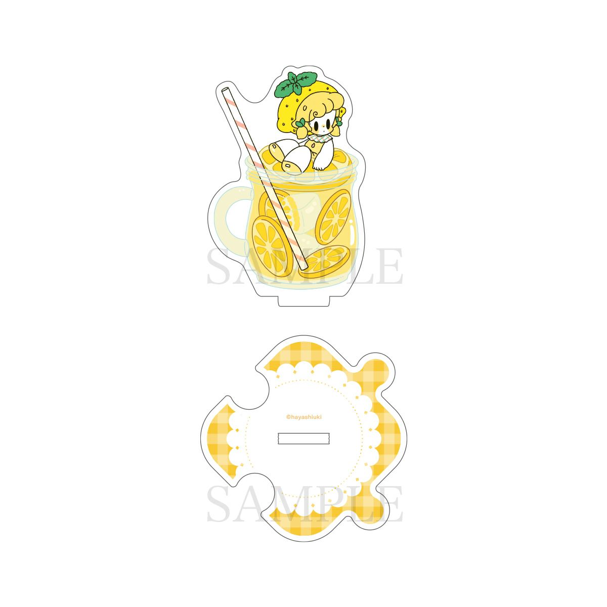 レトロで可愛いイラストを描くイラストレーター はやしうきさんの「レモネード」のアクリルスタンドが登場です!アクリルスタンド同士を台座をつなげて並べることができます。