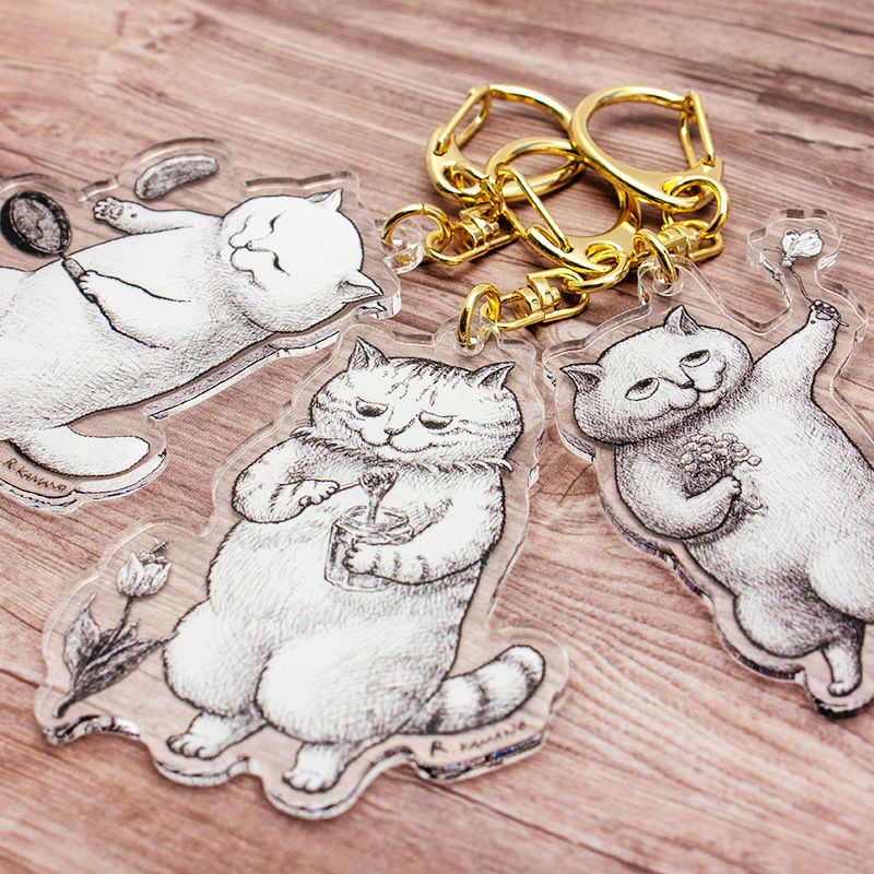 大人気の絵画作家、カマノレイコさんの日常の何気ない仕草を心温まるタッチで描いた猫たちがアクリルキーホルダーになりました!