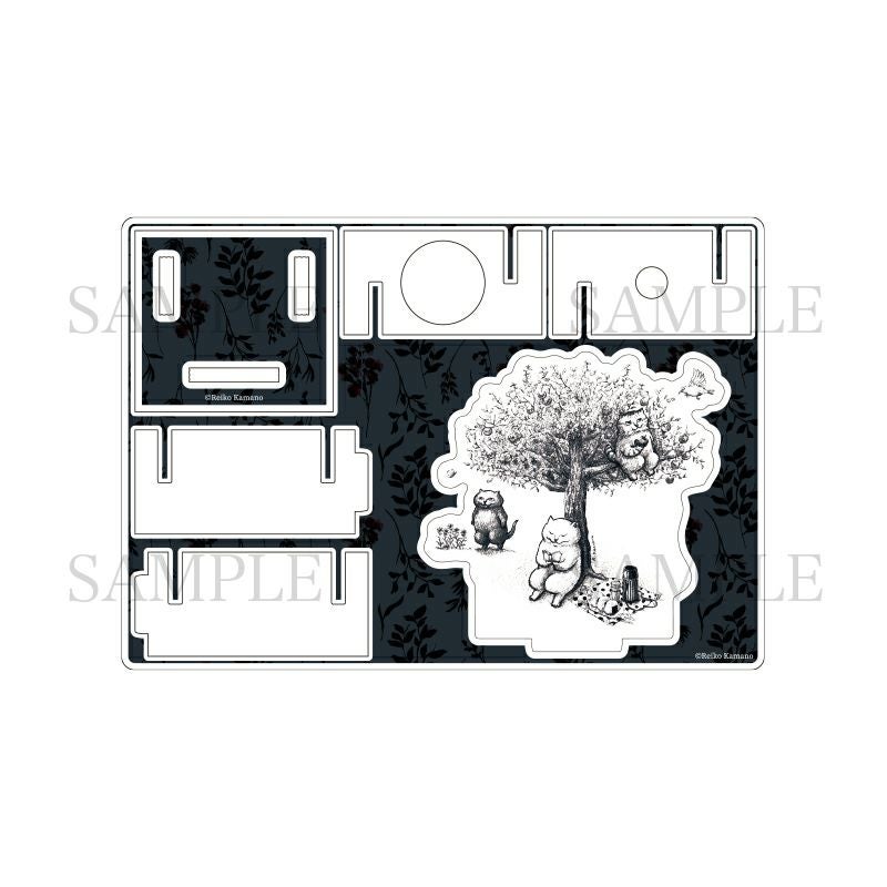 猫や動物をモチーフに日常を描く絵画作家カマノレイコさんの「りんごの木」をご自身で組み立てるタイプのペンスタンドに仕上げました。ペン以外のものを置いても◎。