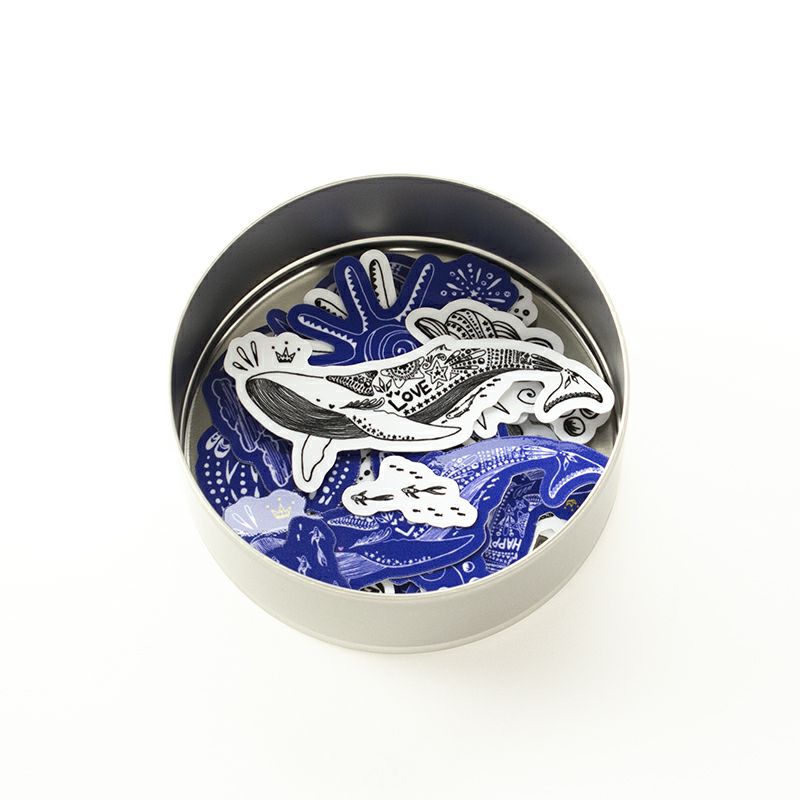 ふたに付いている缶マグネットは取り外すことができます。フレークシール30枚入り。