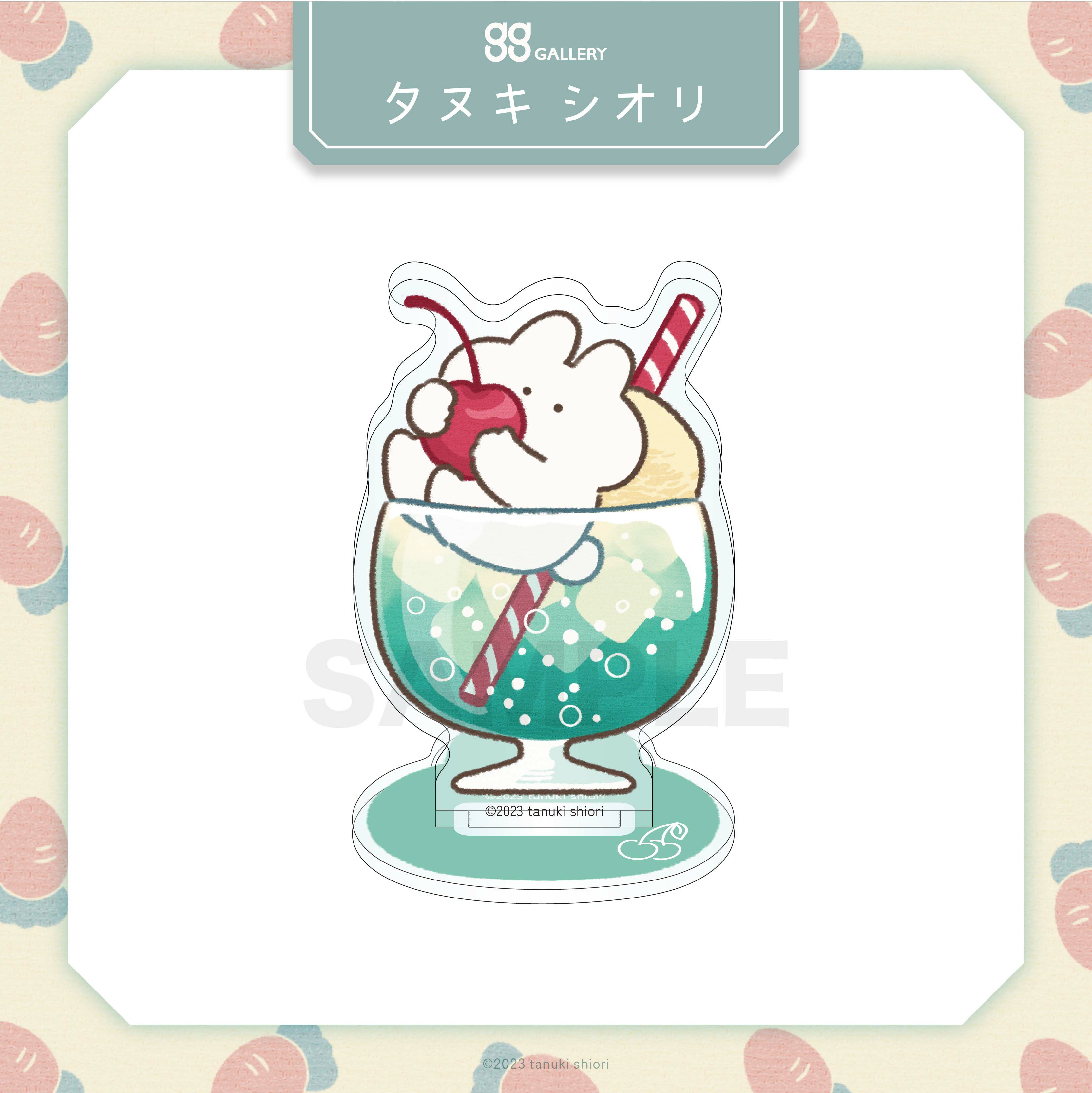 ゆるっと優しい雰囲気の絵を描くイラストレーター・タヌキシオリさんのうさぎの「ぽて」がアクリルスタンドになりました! 枠のまま飾ってもかわいい!組み立てて勉強用や仕事用のデスクに飾るのもおすすめです。クリームソーダの透明感がポイント!