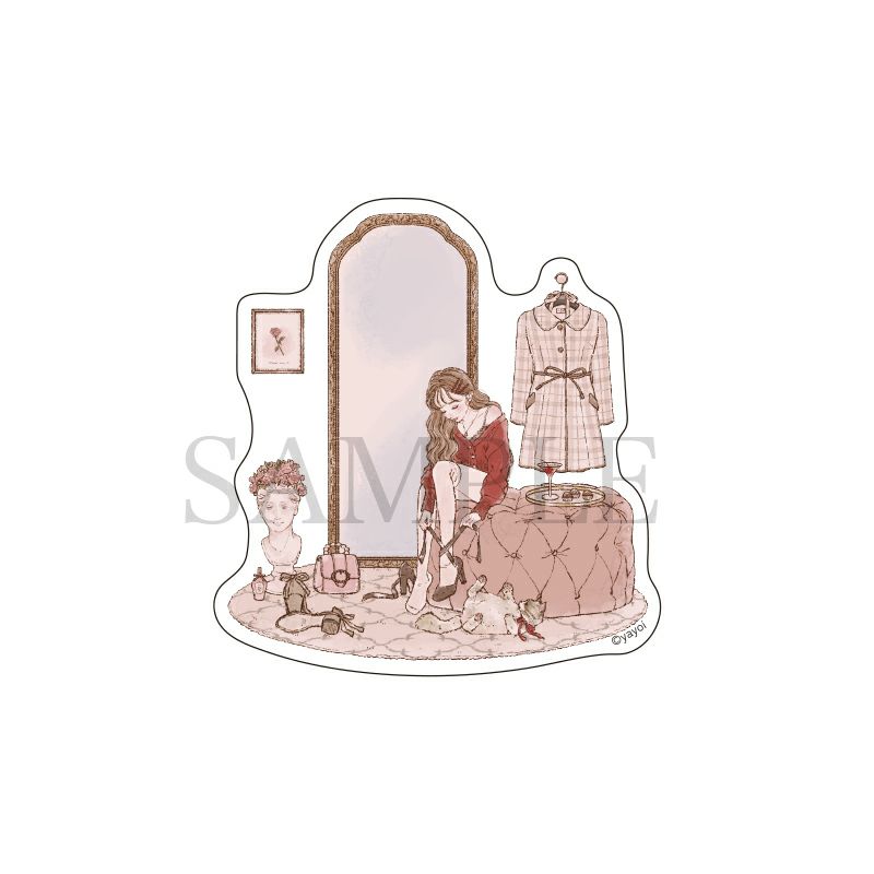 ガーリーなライフスタイルを描くガールズイラストレーターやよいさんのダイカットステッカーです。好きなところに貼ったり、スマホケースに入れたりPCに貼ったりしてもかわいいおすすめの商品です。