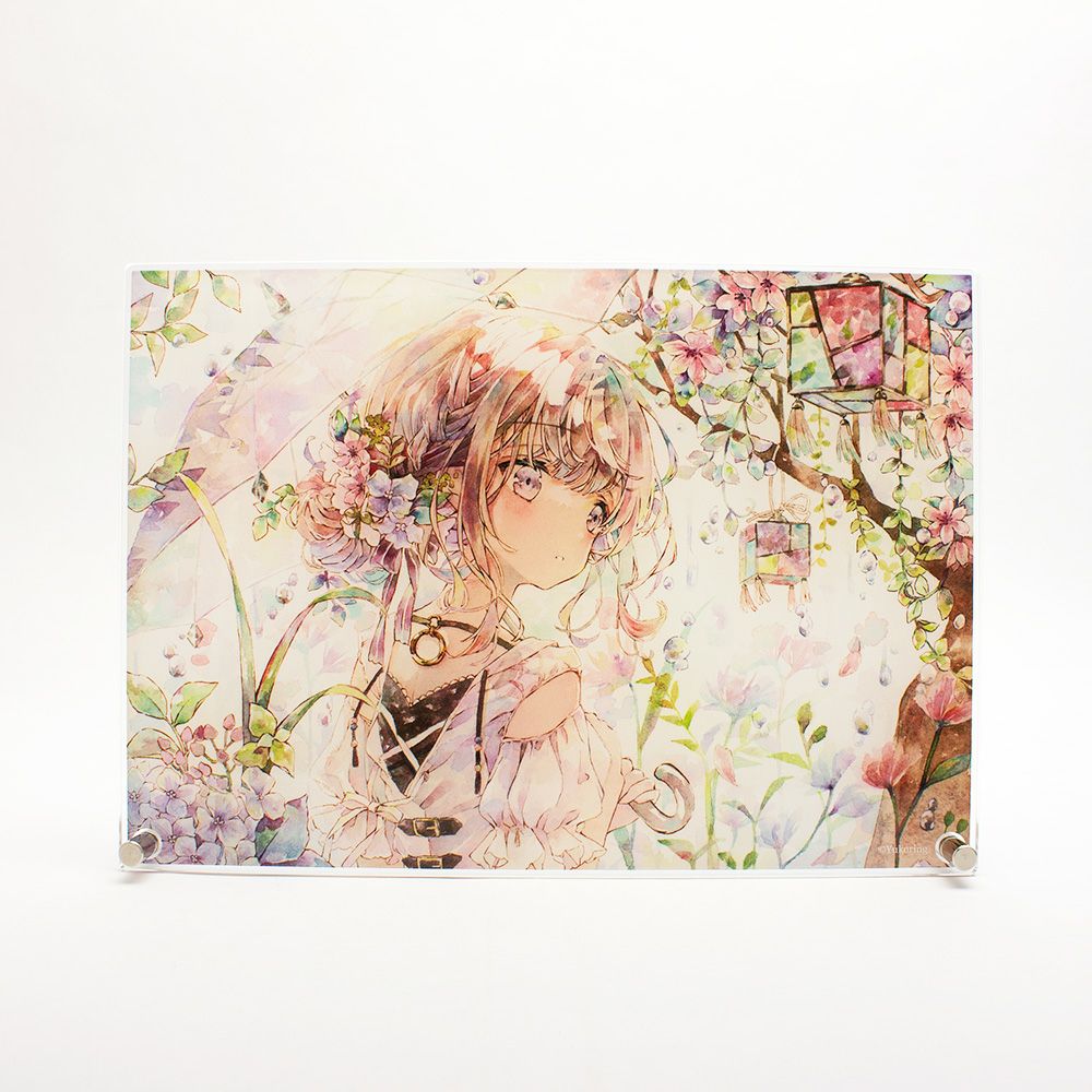 透明水彩イラストレーター 優子鈴さんのイラスト「雨」を飾りやすいA5サイズのアクリルパネルに仕立てました!スタンドネジ(化粧ビス)付き。インテリアとしても重宝すること間違いなしのアイテムです。