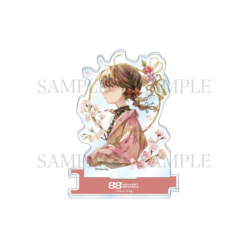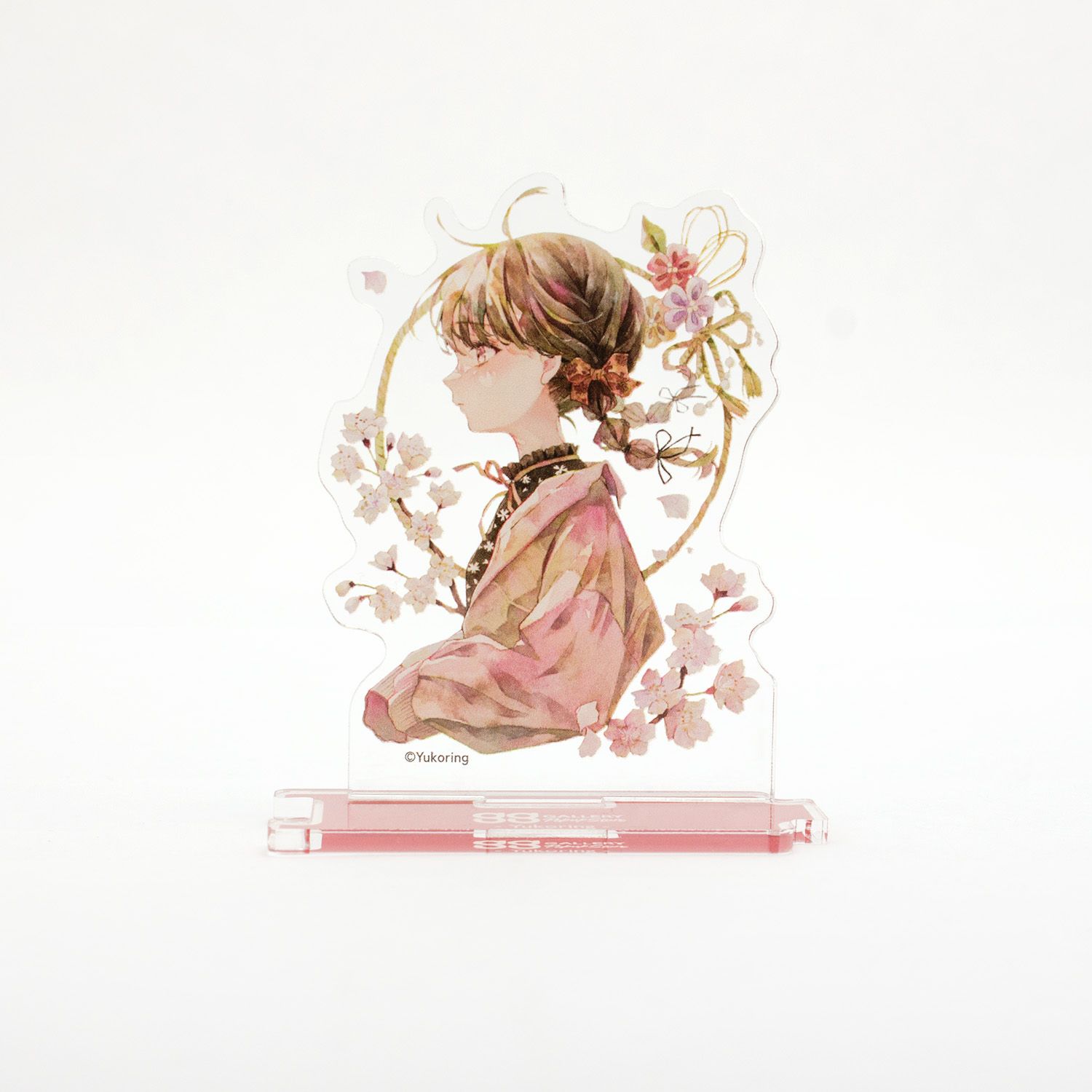 透明水彩を用いた繊細で華やかなアナログ作品を描くイラストレーター 優子鈴さんの作品をアクリルスタンドに仕上げました。アクリルスタンド同士を台座をつなげて並べることができます。