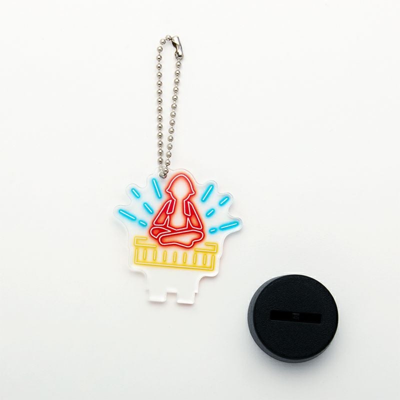 サウナに欠かせない水分補給、自分のペットボトルが一目でわかるネオン風デザインのボトルキャップマーカー。ボールチェーンを付けて鞄やリュックに付けたりと、携帯しやすいアイテムです。