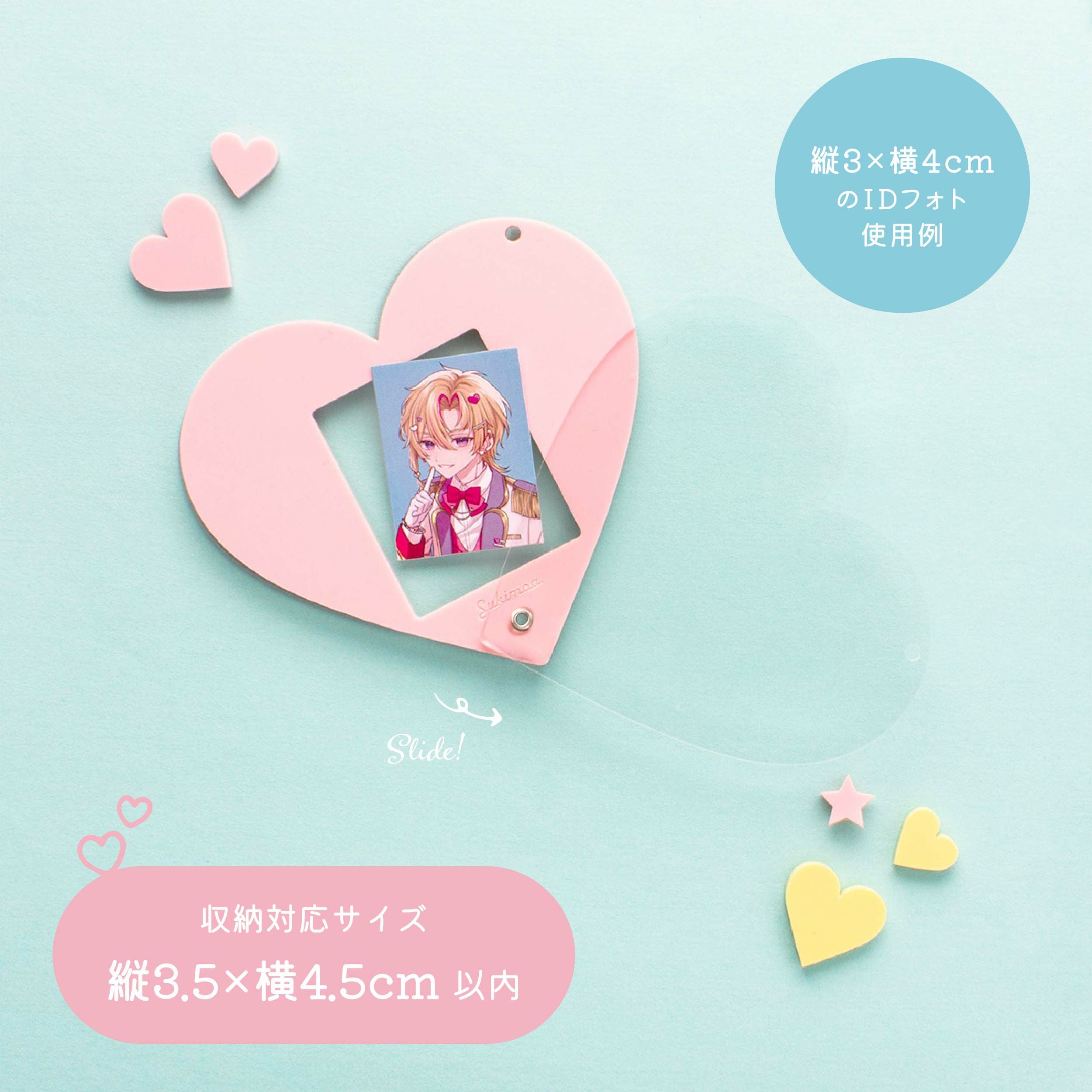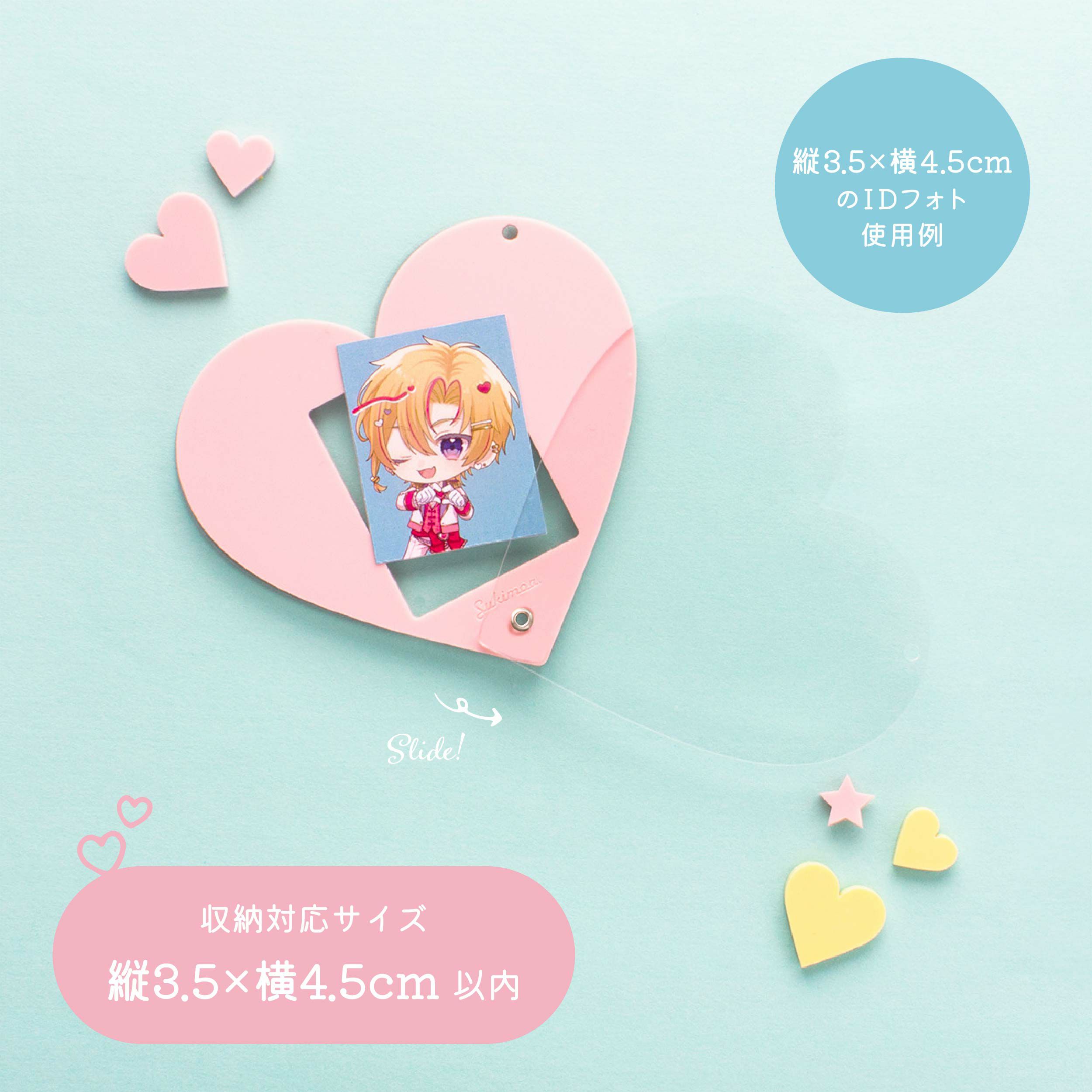 証明写真・IDフォトサイズのカードが入るアクリルホルダーです。 可愛らしいパステルカラー2色展開! デコレーションも自由にしやすいシンプルなデザインです。