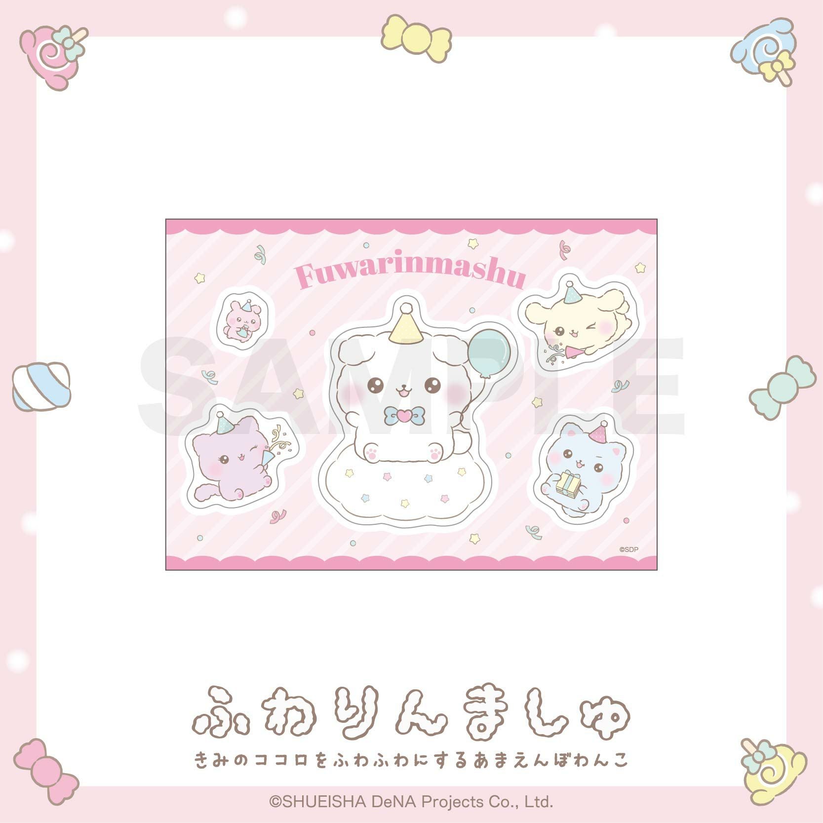 お祝いするふわりんフレンズのハーフカットステッカーです。 手帳やノートなど好きなところに貼ったり使い方色々!お持ちの小物をかわいく彩ってくれます。