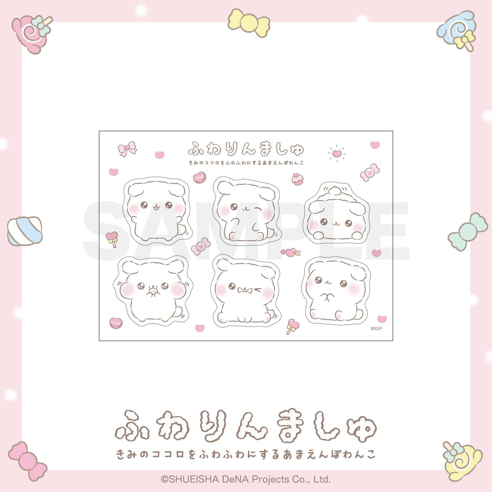 ふわりんましゅのハーフカットステッカーです。 手帳やノートなど好きなところに貼ったり使い方色々!お持ちの小物をかわいく彩ってくれます。