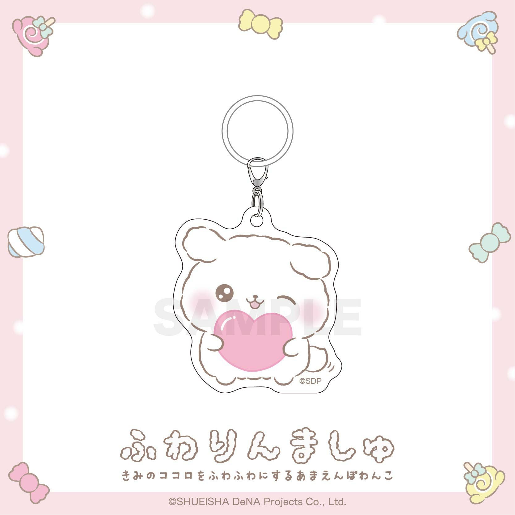 ウインクしているお顔がキュートなふわりんましゅのめじるしチャーム。 傘の柄にリングを通してアンブレラマーカーとして使用したりペットボトルの蓋に取り付けてめじるしにしたりさまざまな場面で活躍すること間違いなし! シリコンリングを取り外してアクリルチャームとしてもお使いいただけます。