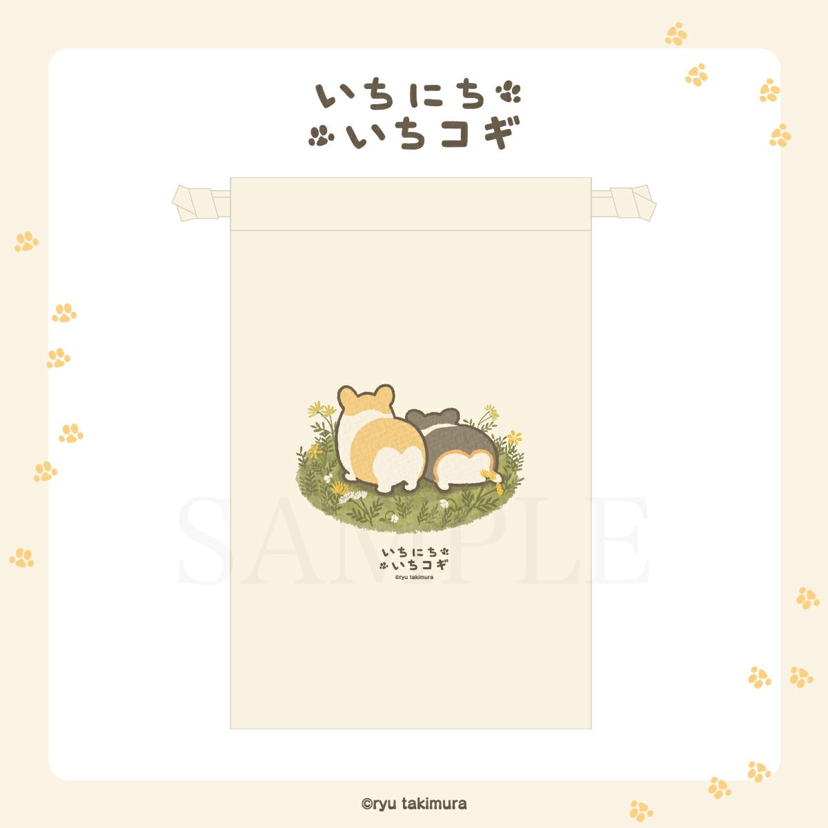 後ろ姿が愛くるしいコーギーたちをデザインした巾着が登場です。化粧品などを入れてコスメポーチにも、ハンカチやティッシュを入れてエチケットポーチとしてもお使いいただけます。
