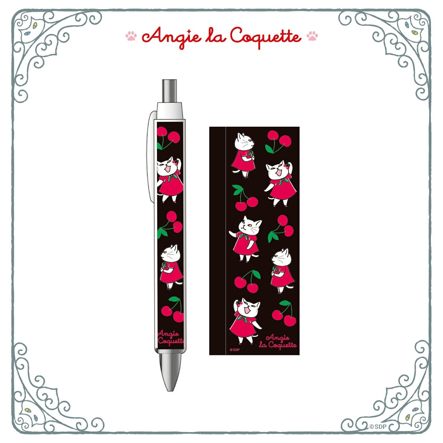 アンジーとさくらんぼをモチーフにデザインした可愛いボールペンです。