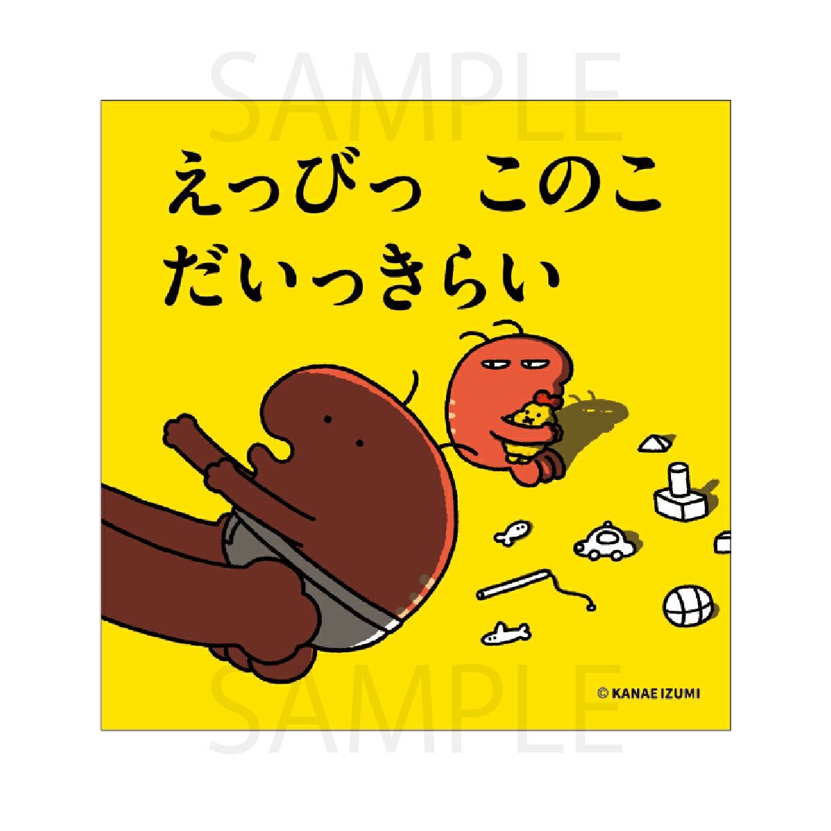 初めての絵本『えっびっ このこ だいっきらい』(303BOOKS)の表紙がミニタオルになりました。使いやすいサイズで、カバンに入れてお出かけのお供に!