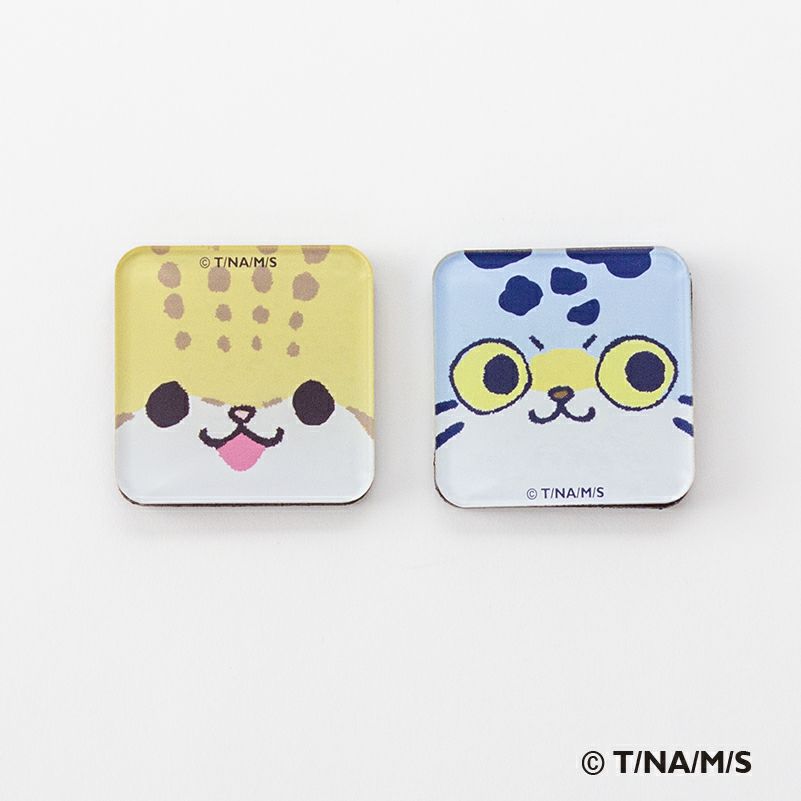 スナとマヌの顔が大きくあしらわれたアクリルマグネットです。2個セットになっています。